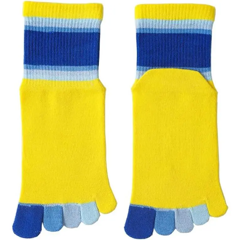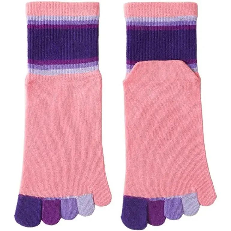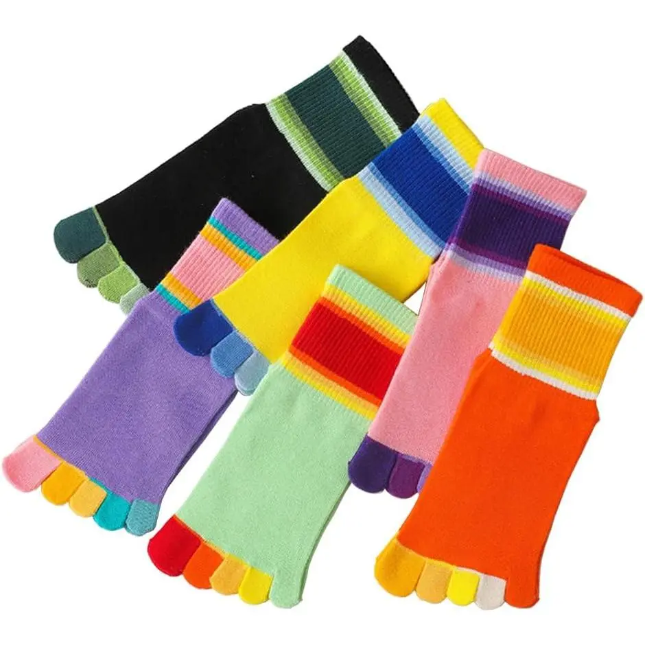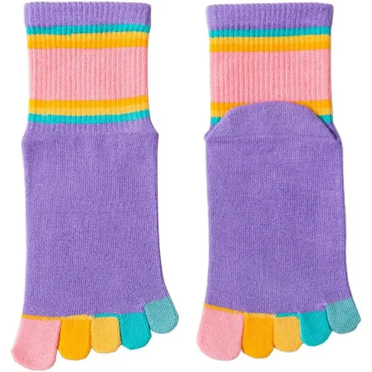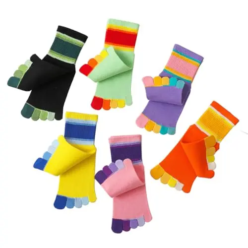 Girls' Seamless Rainbow Stripes Five Finger Toe Socks - 6 Pack Cotton Crew Socks for Kids School, Comfortable Breathable Non-Slip Everyday Wear, Colorful Striped Pattern Children's Socks