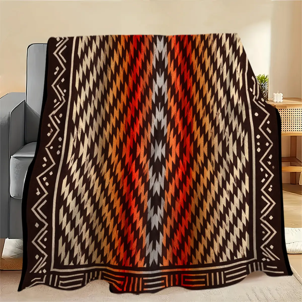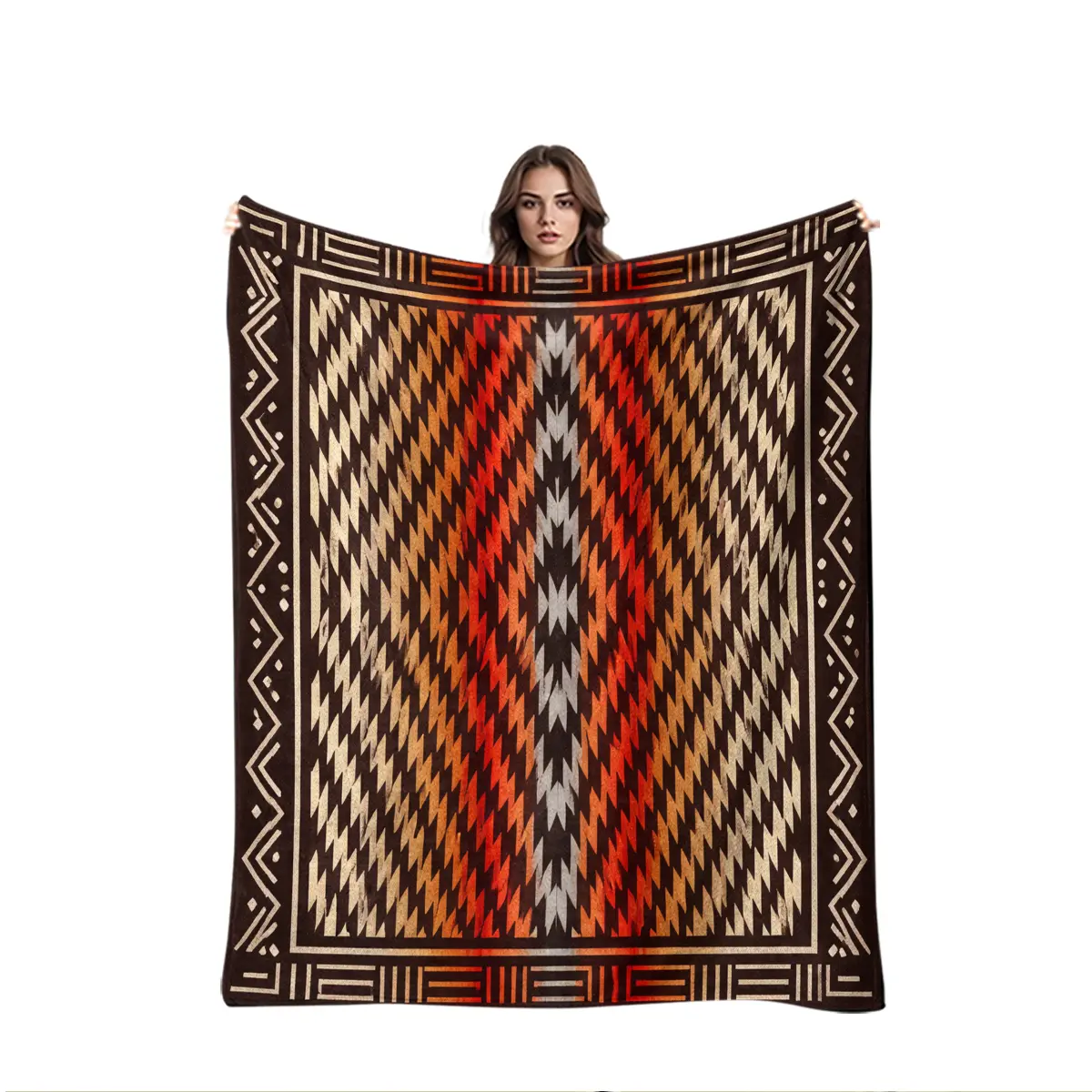 With classic North American Indigenous geometric diamond patterns at its core, a symmetrical radial center structure paired with a deep brown base color and a warm red-orange gradient perfectly recreates the traditional blanket style of the Southwestern region. Each diamond groove carries ancient tribal blessings and power, and when placed on a sofa or bed, it instantly infuses the home with rich ethnic vibes and a retro aesthetic.