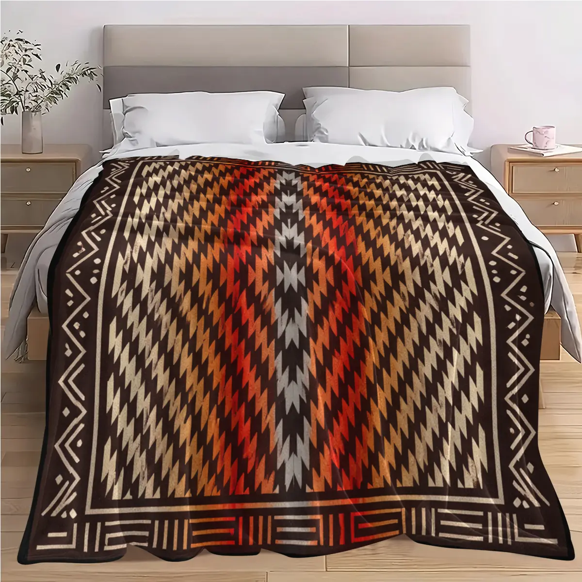 Native American geometric diamond-quilted flannel blanket, featuring retro, luxurious, ethnic attributes. Perfectly suits Pendleton styles, Western American aesthetics, Indian-inspired design, and minimalist/wabi-sabi home decor. Ideal as a sofa throw, be