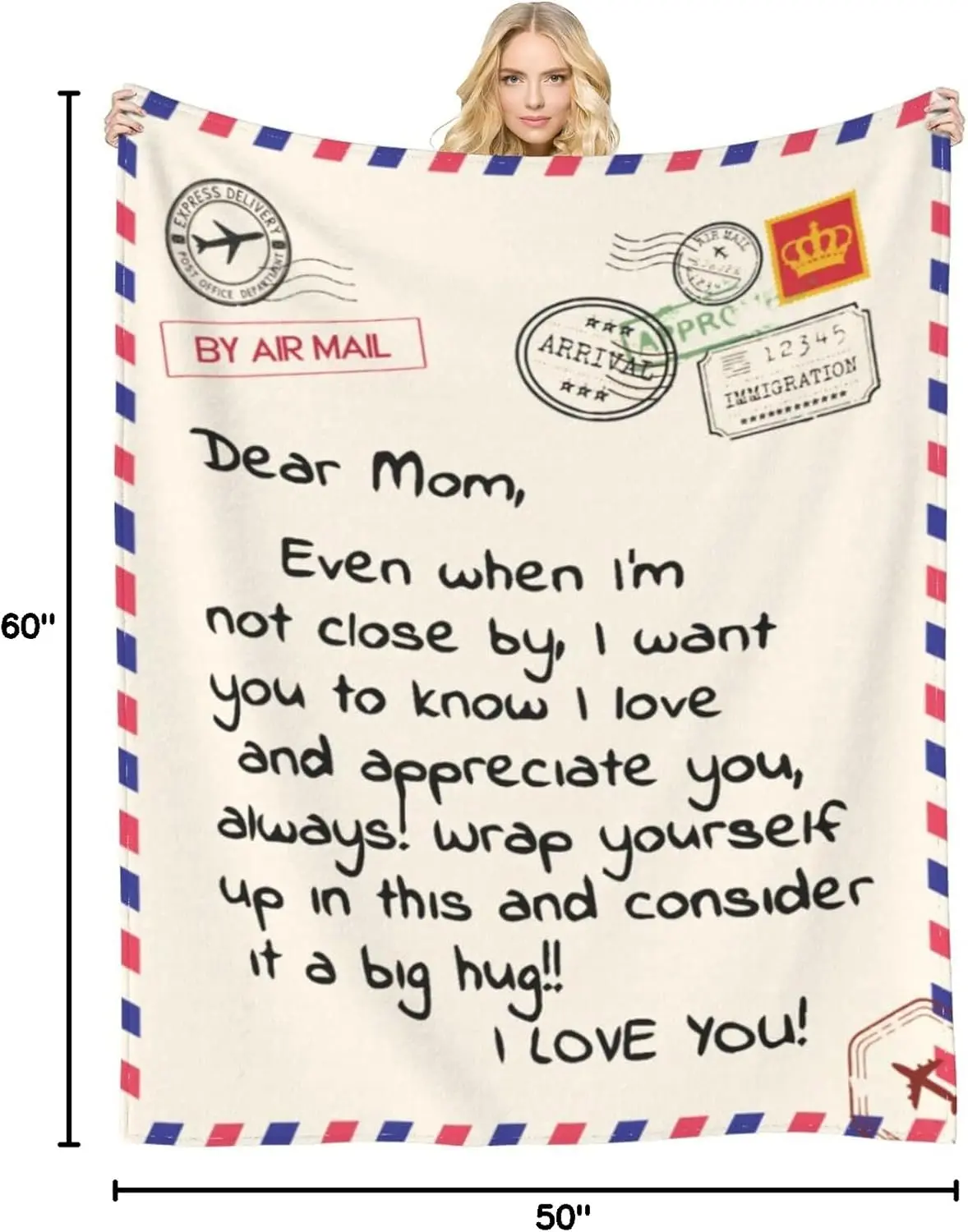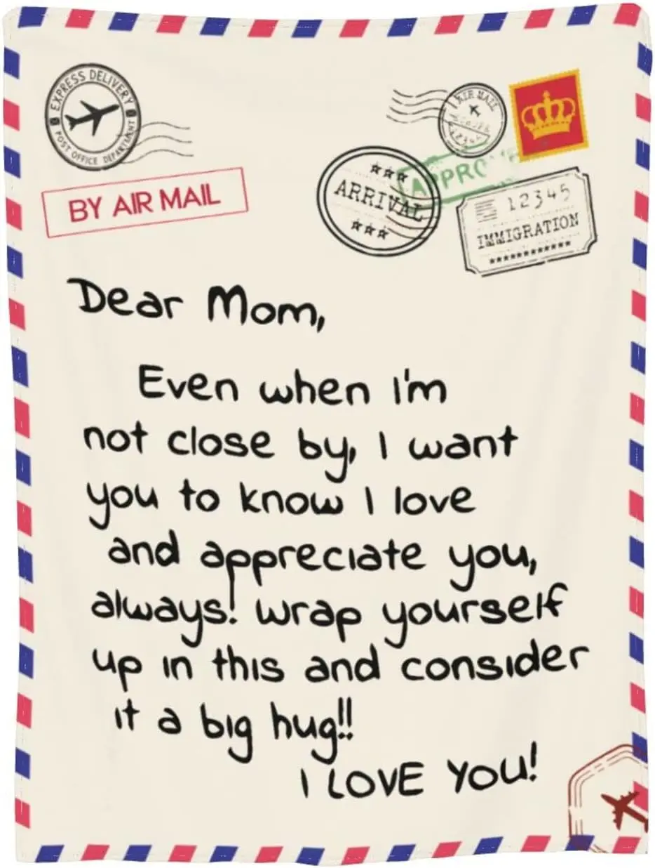 "To My Dearest Mom" Airmail-Style Hug Blanket | A Heartfelt Birthday and Mother's Day Gift for the Mom Who "Has Everything"