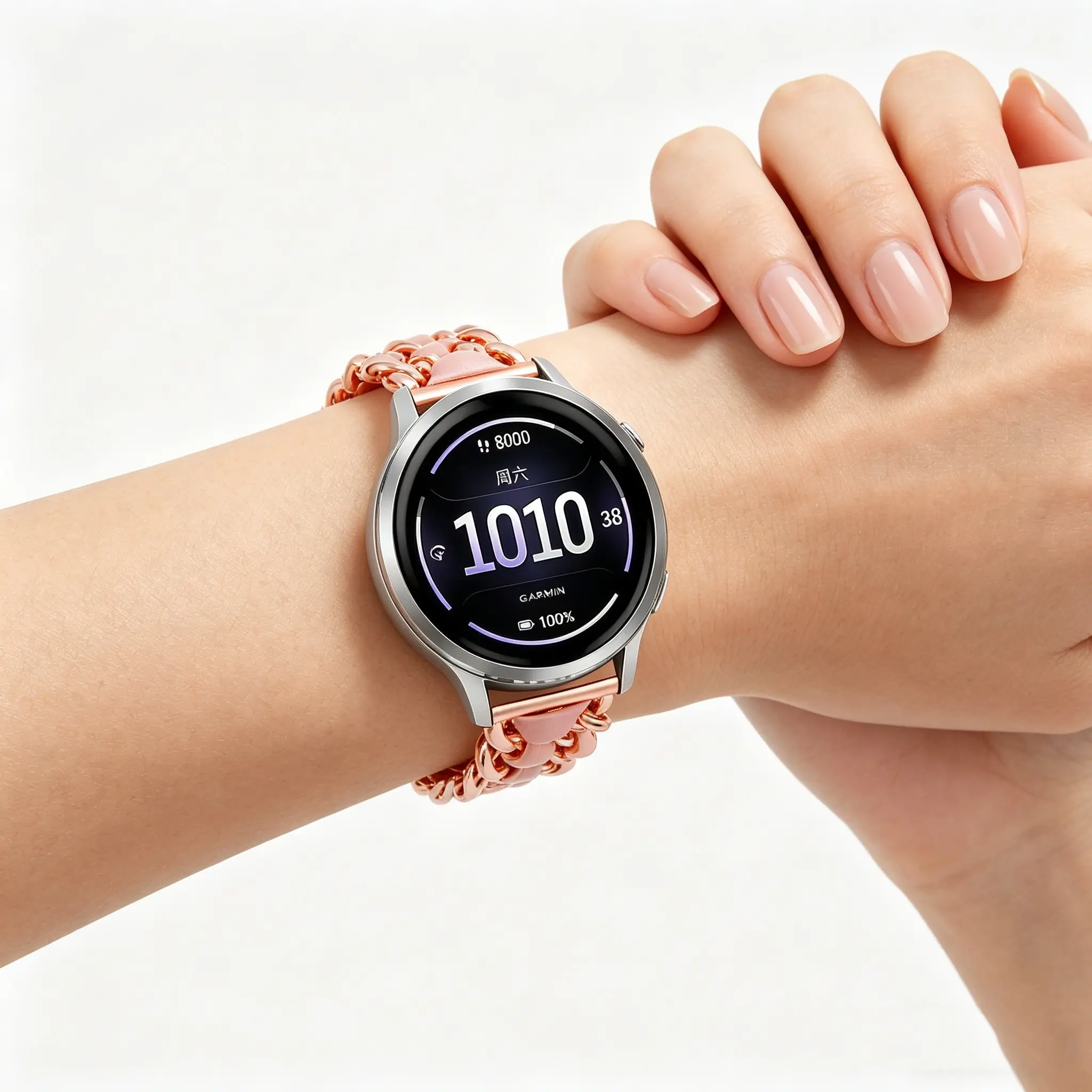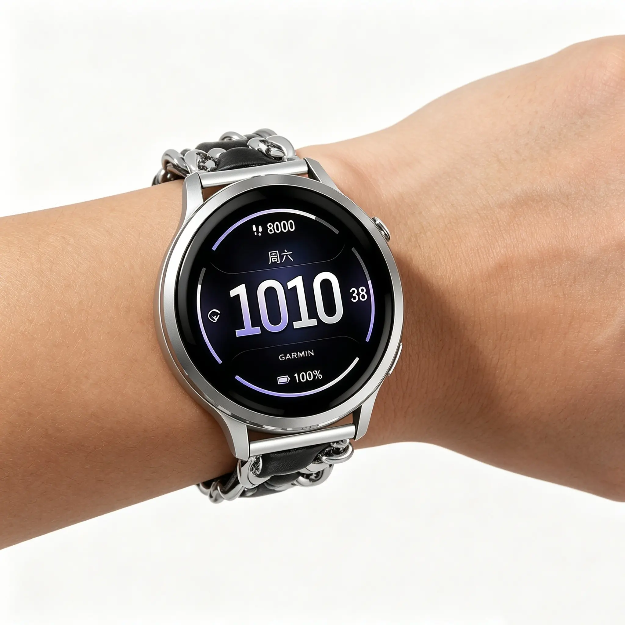 Suitable for Garmin Venu 3 strap 45mm/Venu 4 45mm/Venu2/Vivoactive 4, 22mm quick release steel metal strap replacement strap, suitable for Forerunner 570-47mm/265/255 women's Cuban strap