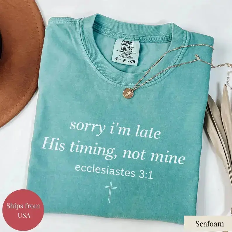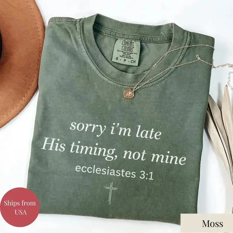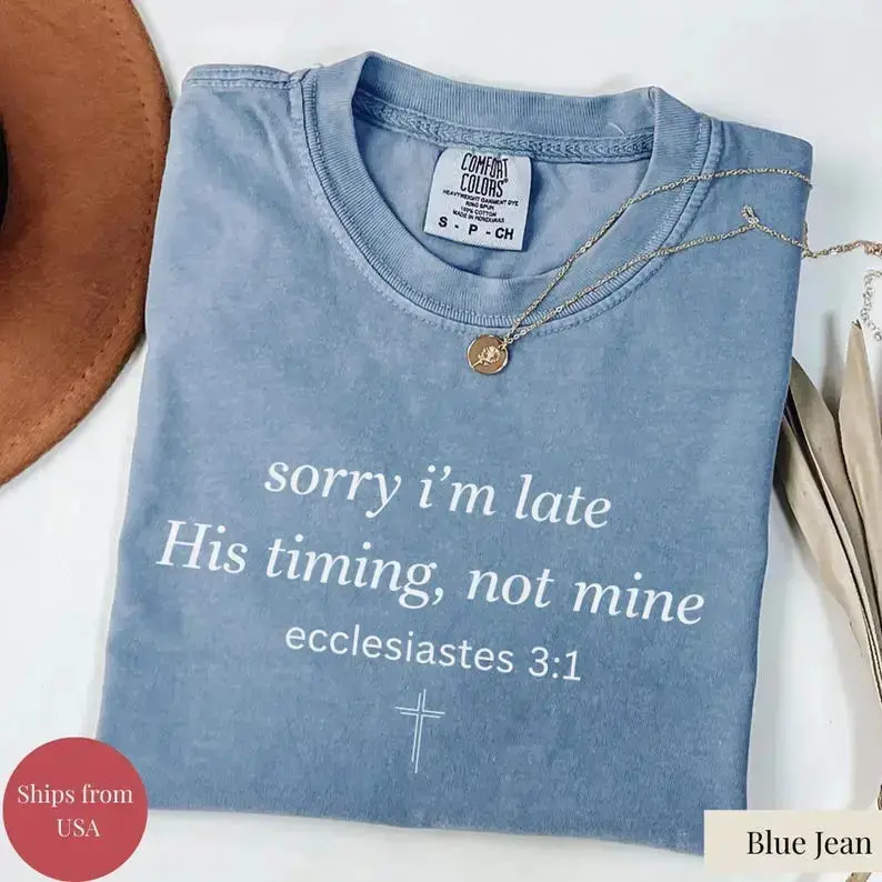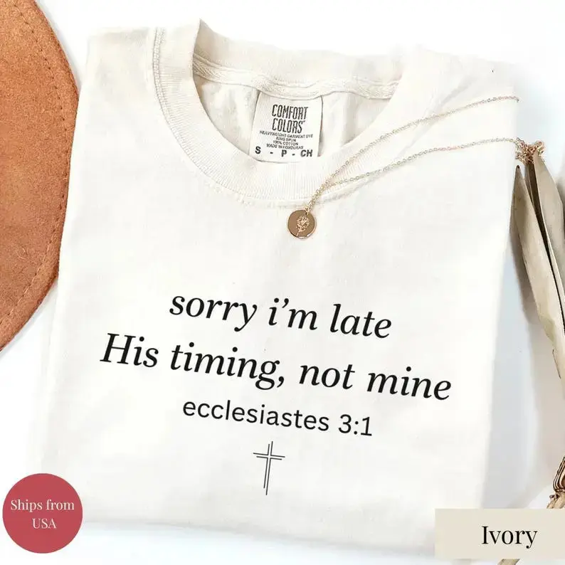 Sorry I’m Late His Timing Not Mine Shirt,Ecclesiastes 31 Comfort Colors Tee, Christian Bible Verse Faith Shirt,Minimalist Christian T-Shirt - DarkFlex