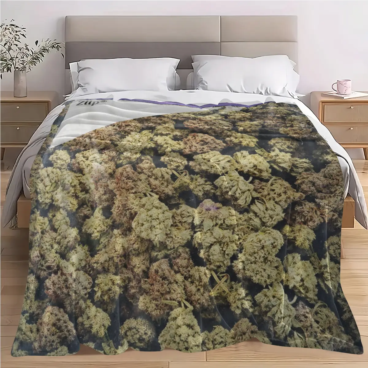 Creative plant-texture art flannel blanket featuring bud textures that evoke natural, soothing, vibrant qualities—perfect for plant lovers and minimalist styles. Suitable as a sofa cover, bedspread at the foot of the bed, or air-conditioning blanket; inst