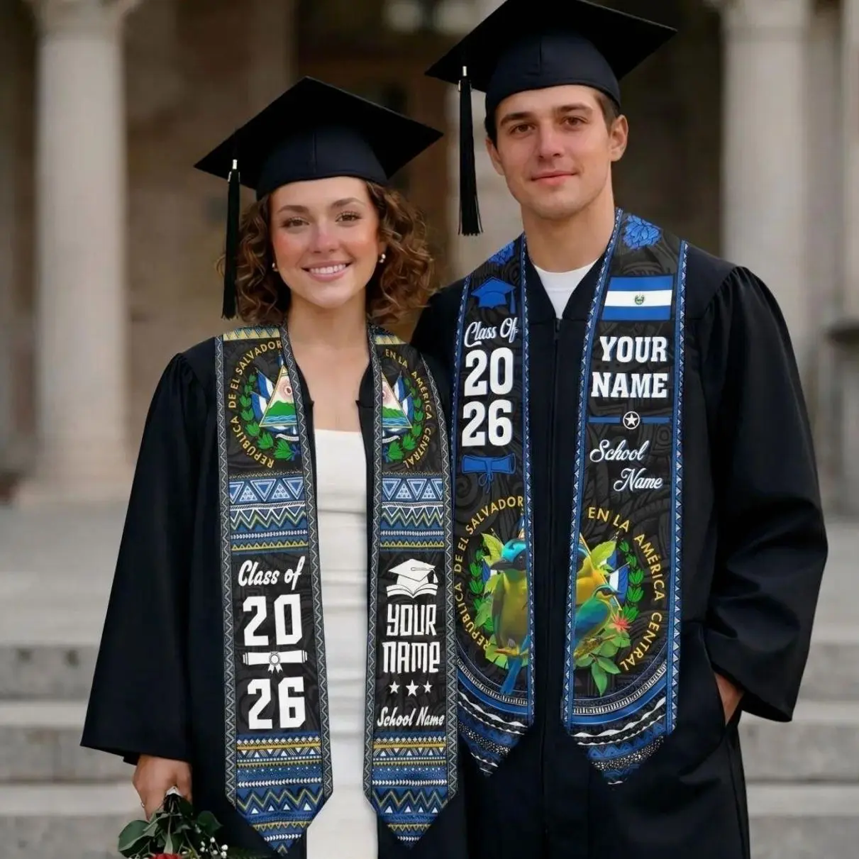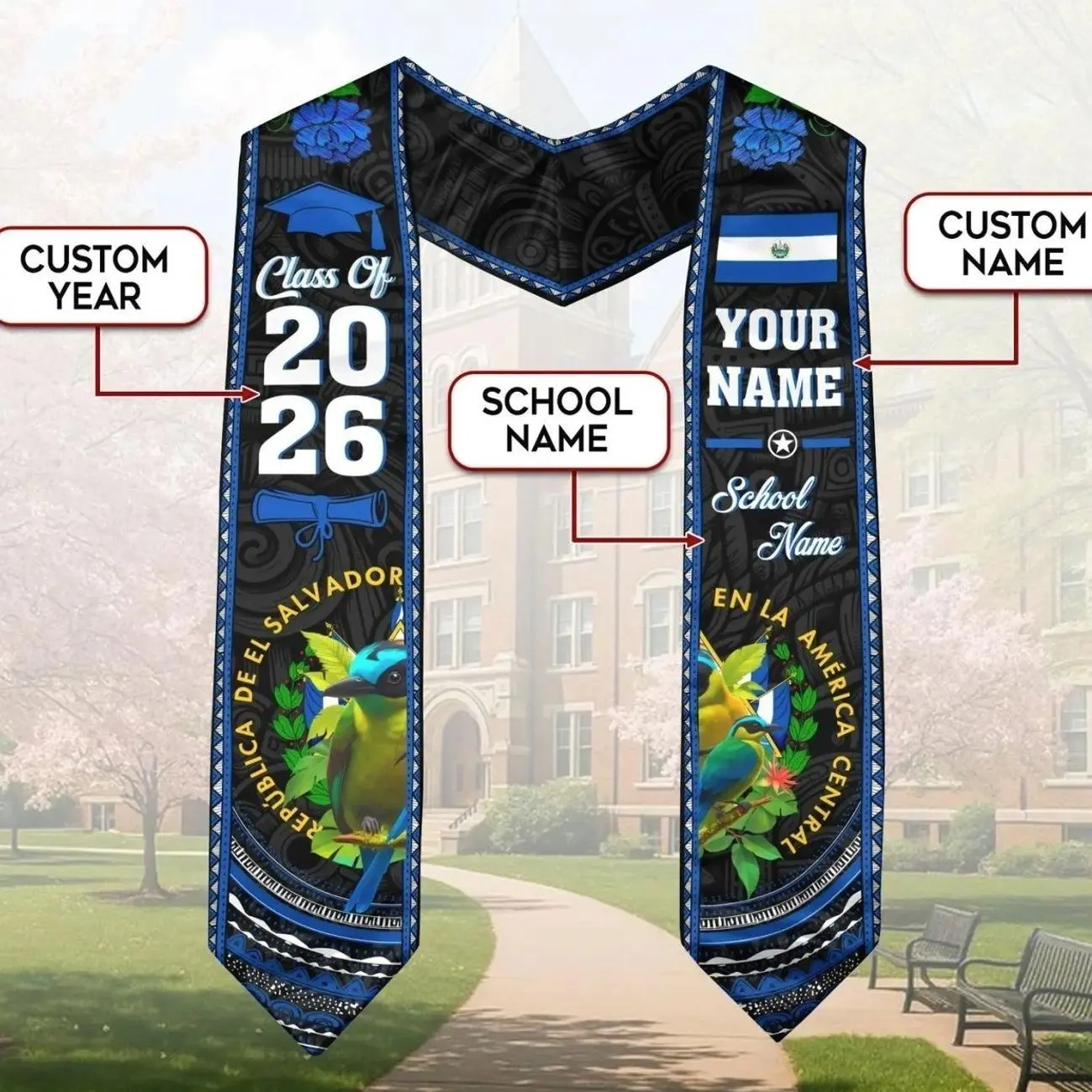 Custom Salvadorans American Flag Graduation Sash 2026, El Salvador Graduation Stole 2026, Salvadorans Graduation Sash, Graduation Stole 2026
