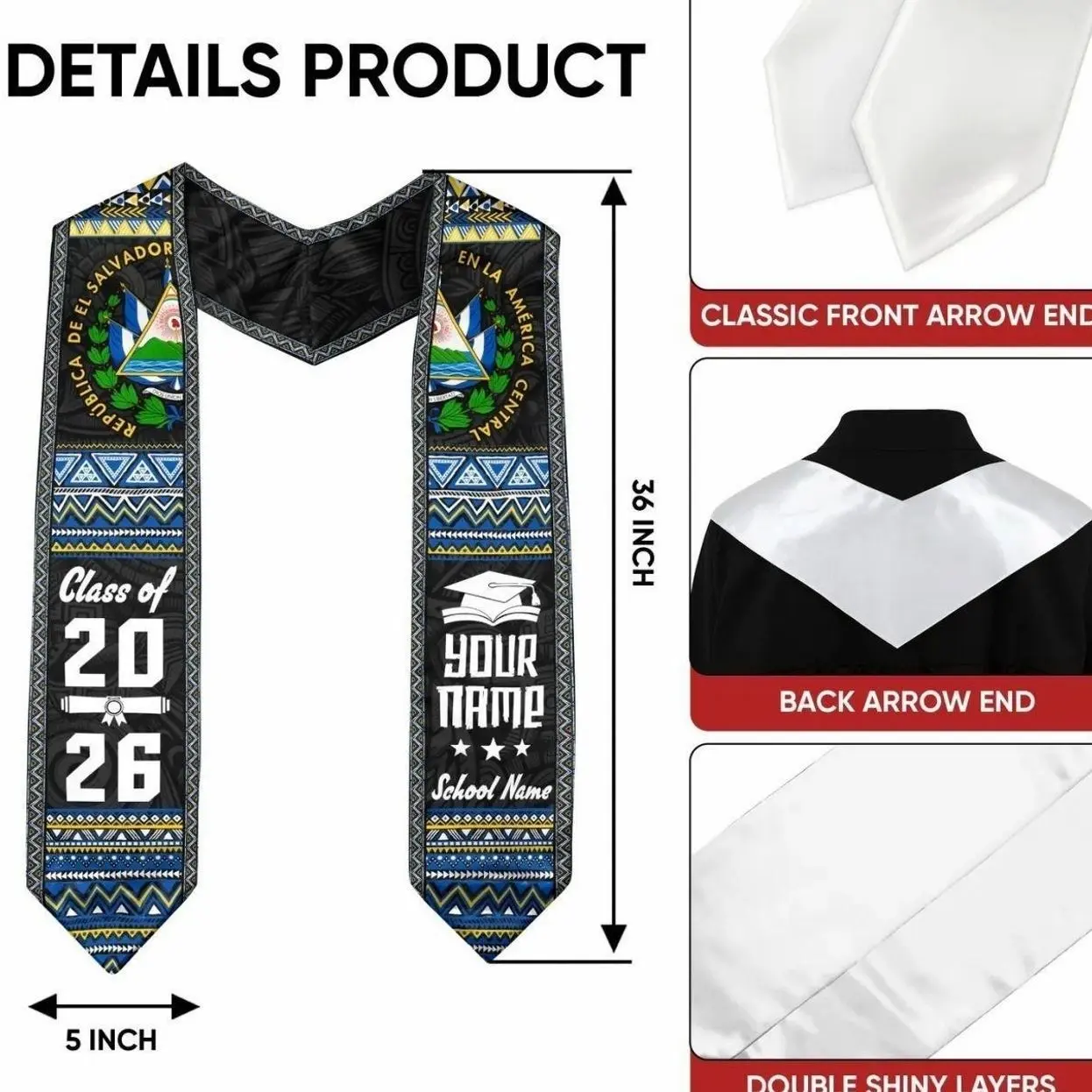 5. Custom Salvadorans American Flag Graduation Sash 2026, El Salvador Graduation Stole 2026, Salvadorans Graduation Sash, Graduation Stole 2026