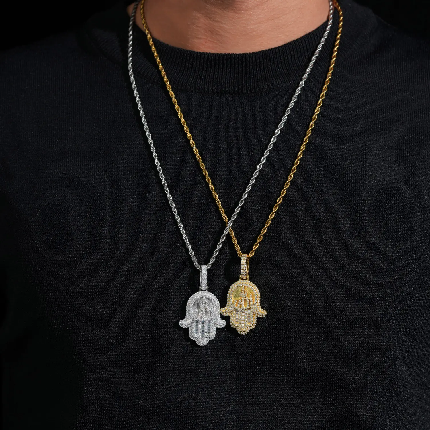 [ICE HUE 18K Gold Vacuum Plated S925 Pendant with 5A+ Sri Lanka Moissanite | Fire Character Palm Style | Free Copper Necklace 🌟