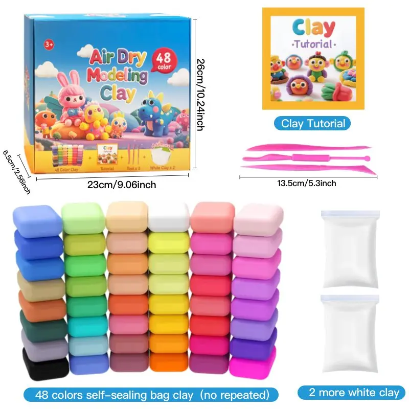 ·Colorful Air-Dry Clay Set: Our set includes 48 vibrant air-dry clays, 3 practical shaping tools, and a sealable storage bag for easy storage. With 48 rich colors, you can mix and match to create unique hues—perfect for unleashing endless creativity.