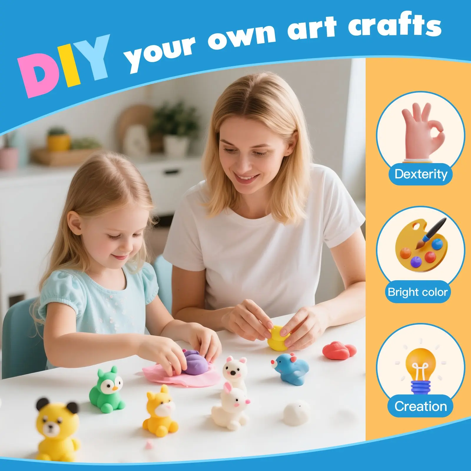 ·Boost Imagination & Skills: These bright clays spark kids’ creativity—mixing colors lets their ideas run wild. While playing, they’ll build hand-eye coordination, color-matching skills, and fine motor abilities.