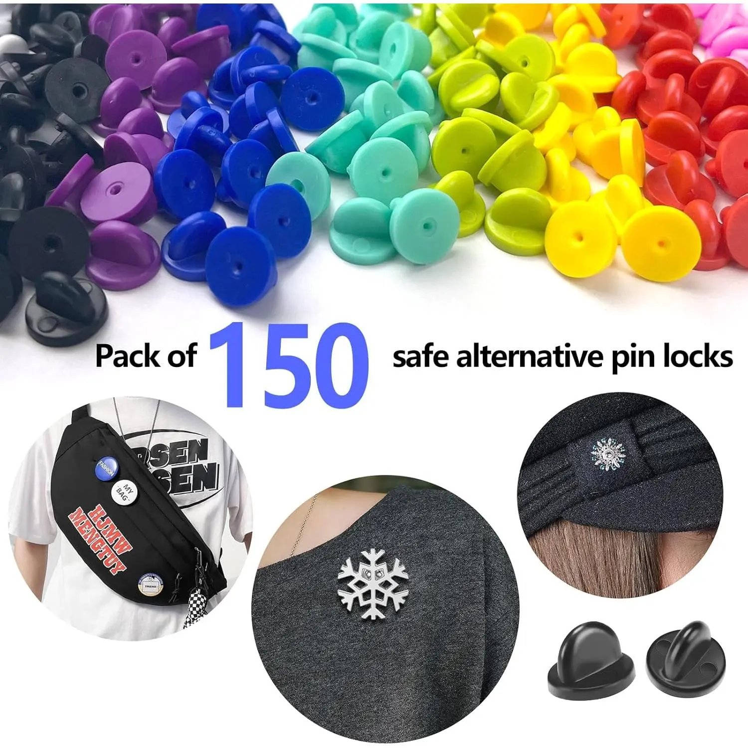 150Pcs Rubber Pin Backs Locking, Multicolor Silicone Pin Locks With Storage Case For Brooch Tie Hat Badge Insignia