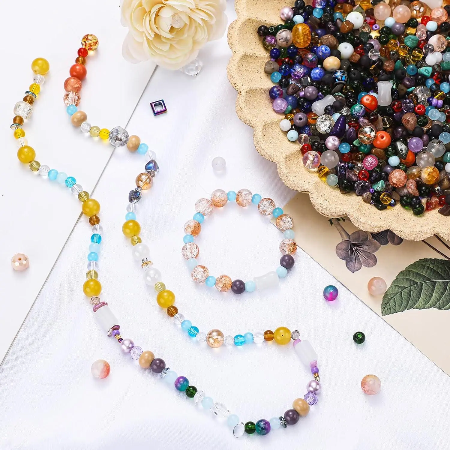 Sureio 1300 Pcs Assorted Glass Beads for Jewelry Making, About 0. 9 Pounds Multicolor Crystal Stone Beads Bulk, 5-13mm DIY Lamp Work Arts and Crafts Decorative Hobby Artistry Making Supply(Colorful)