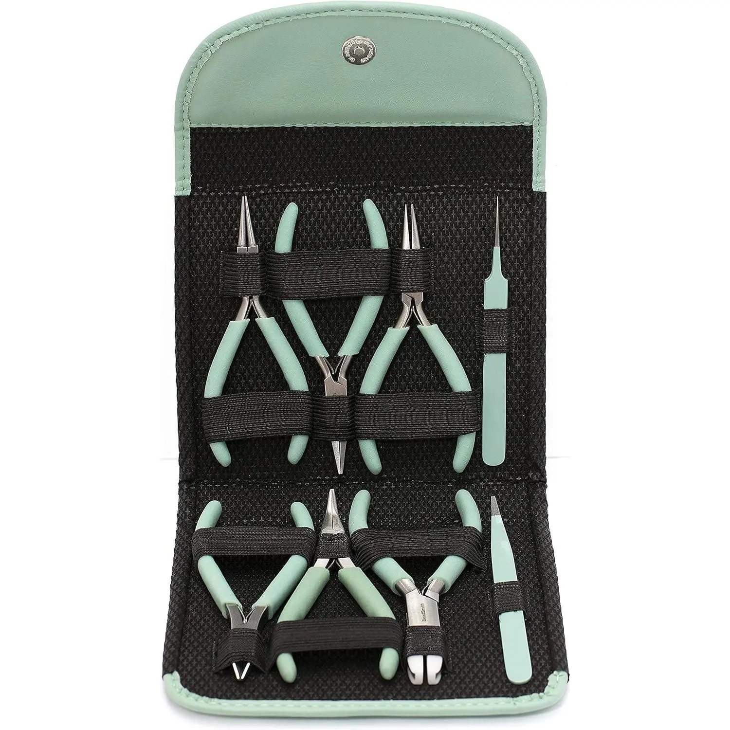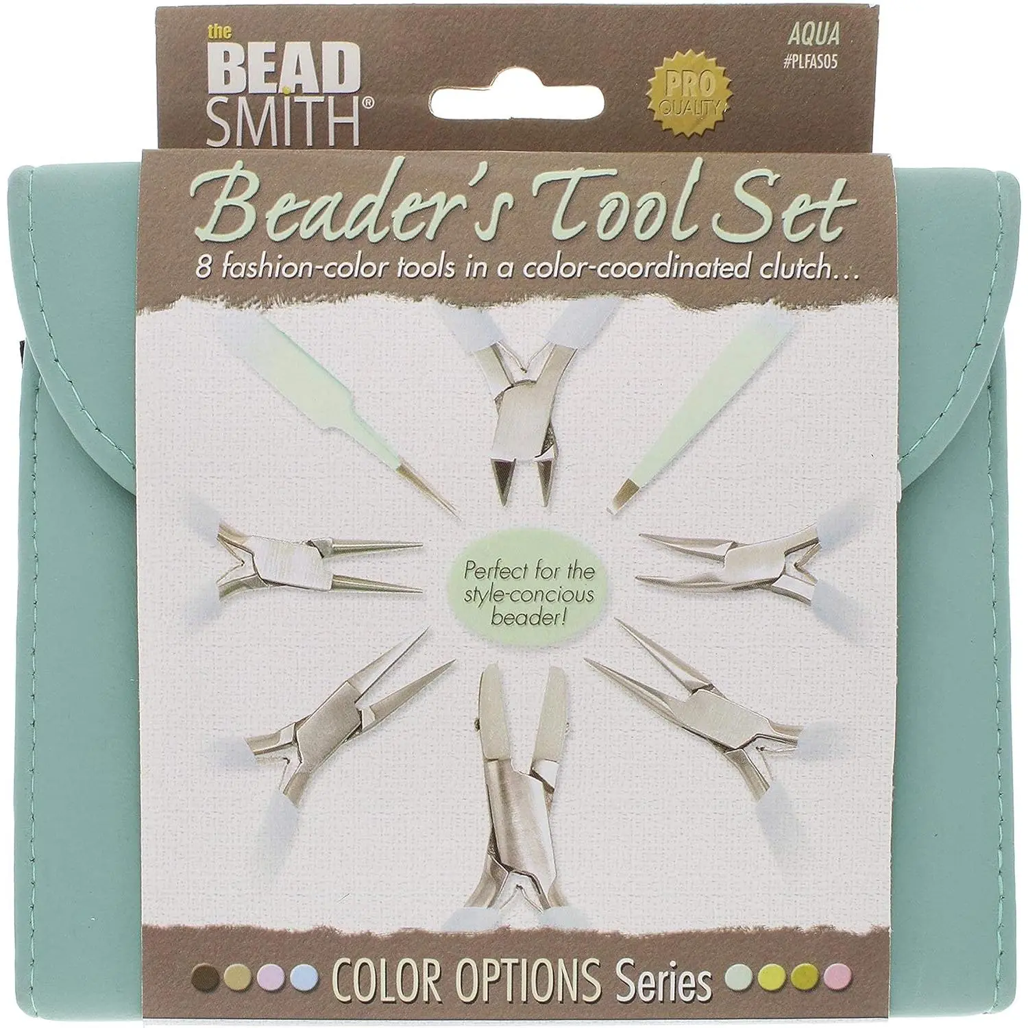 The Beadsmith Fashion Color Pliers – Set of 8 Slimline Color-Coordinated Tools – Matching Clutch in Aqua – Jewelry Making Supply Kit to Create Necklaces, Bracelets, Earrings & More