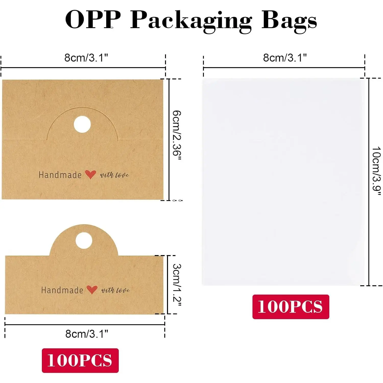 joycraft 100Pcs Brown Packaging for Small Business, Jewelry Package Supplies with Clear Bags, Jewelry Display Bags for Selling, Craft Packaging Set for Bracelets, Key Chains, Earring.