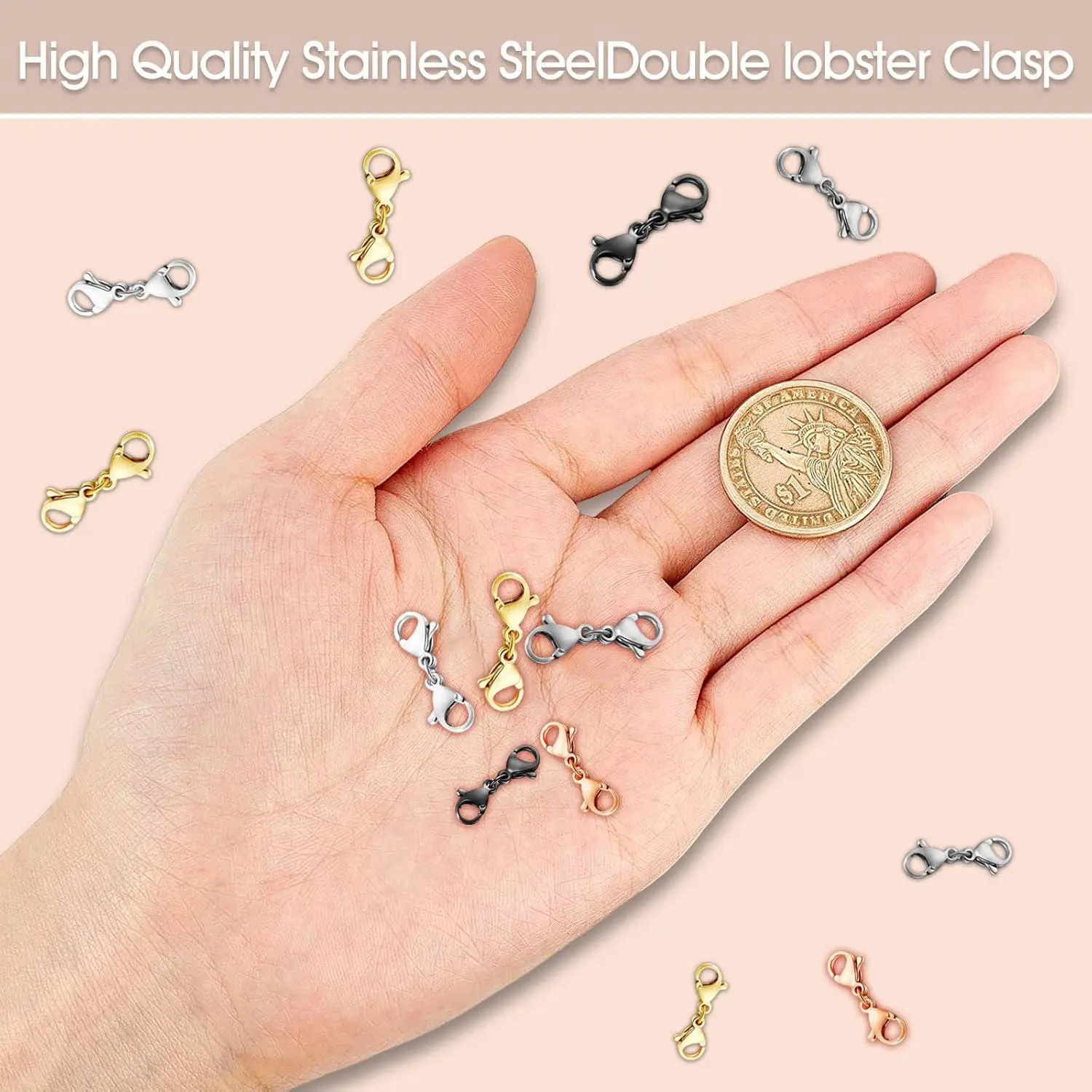 OHINGLT Double Lobster Clasp Necklace Extender Connector Bracelet Extension, Gold and Silver Lobster Claw Clasps for DIY Jewelry Making
