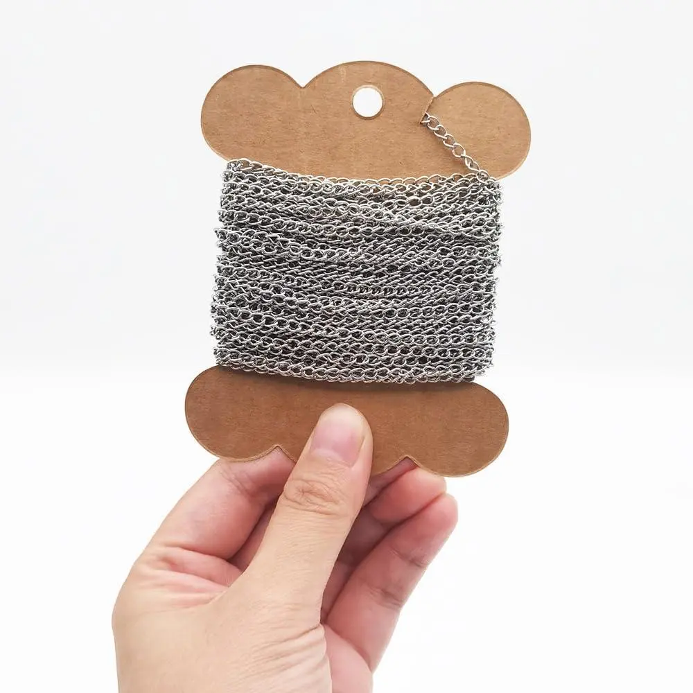 INSPIRELLE 30 Foot Stainless Steel Curb Chains 3mm Tarnish Resistant Extender Chain for Bracelet Necklace Jewelry Making