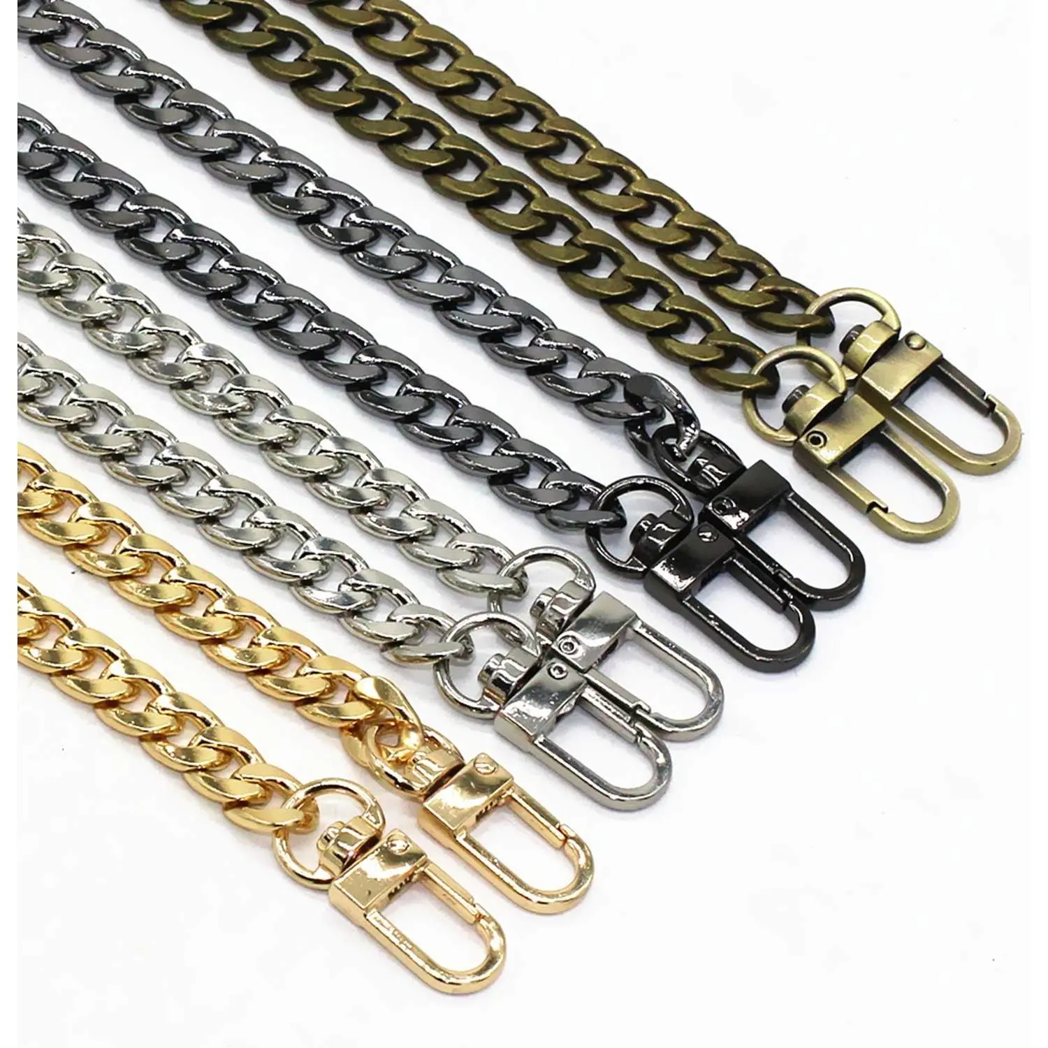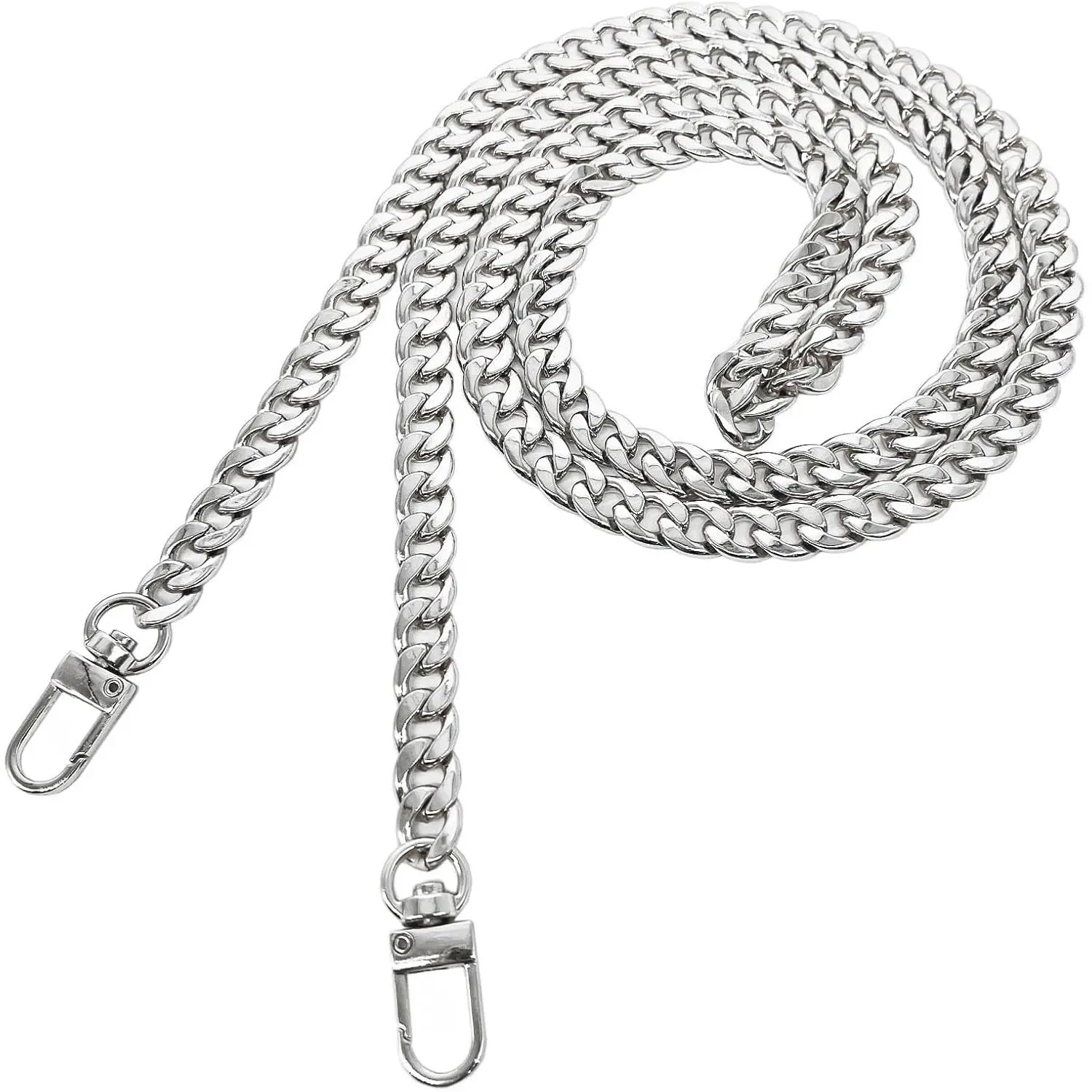 Model Worker DIY Iron Flat Chain Strap Handbag Chains Purse Chain Straps Shoulder Cross Body Replacement Straps with Metal Buckles (47", Silver)
