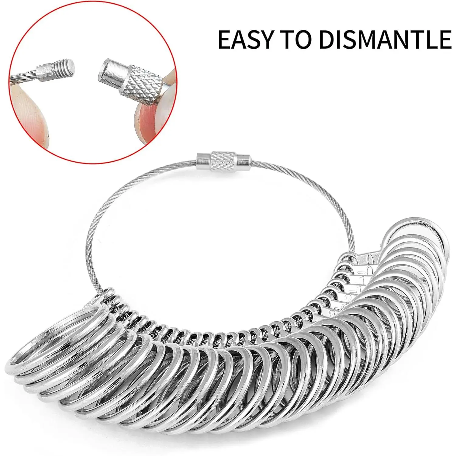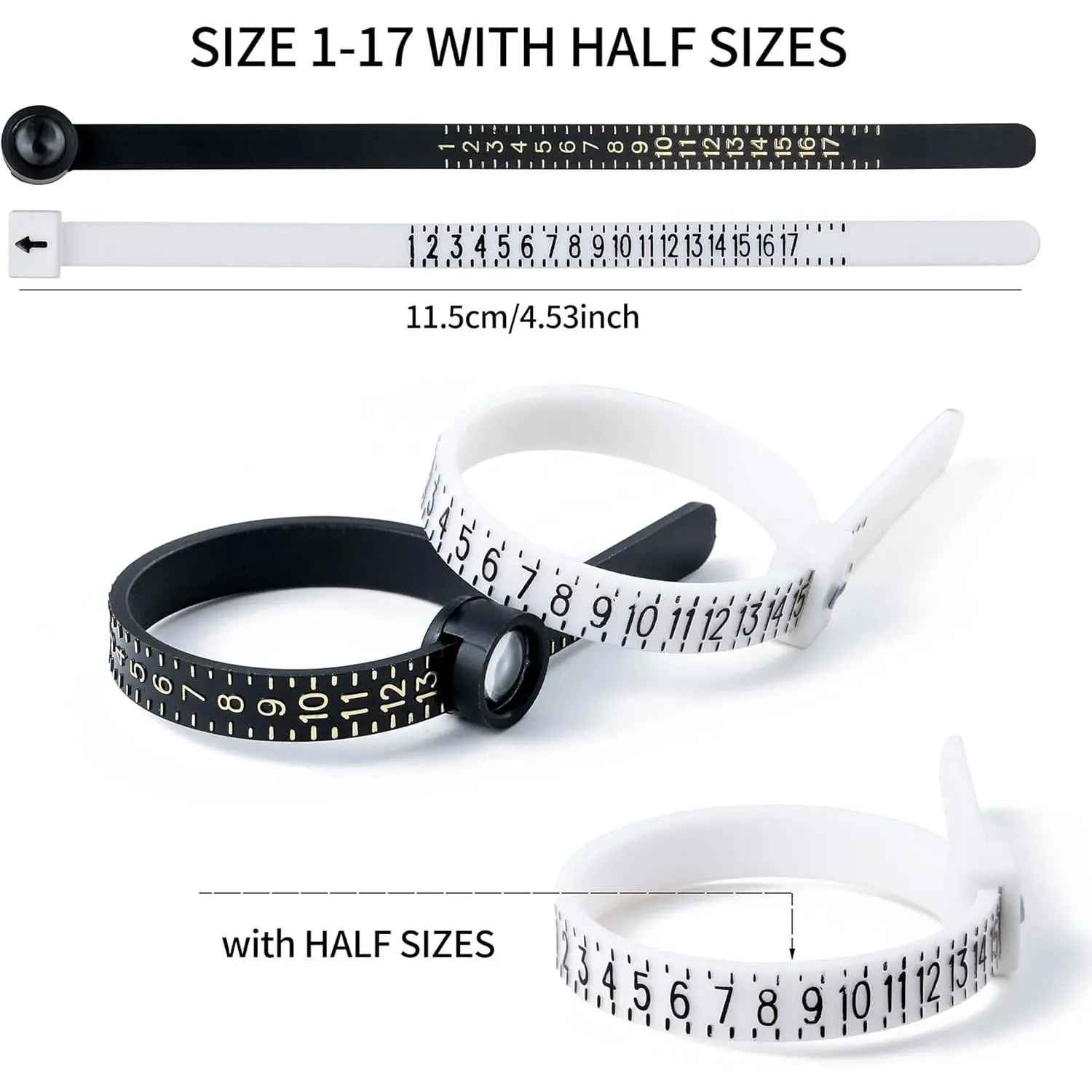 Bflaae Ring Sizer Measuring Tool Kit, 27 PCS Stainless Steel Measuring Ring Tool, US Ring Size 0-13 with Half Size, 2 PCS Reusable Finger Size Tape with Magnified Glass 1-17 USA Rings Size
