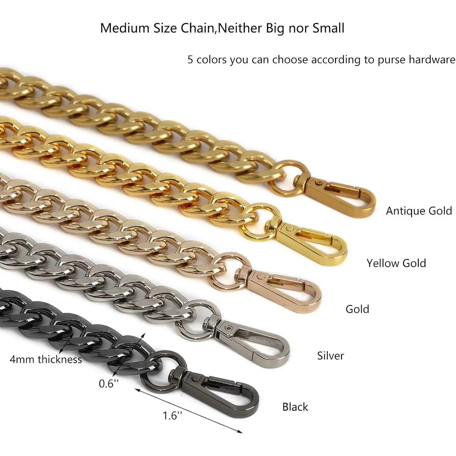 Medium Size Fabulous Metal Shoulder Crossbody Purse Strap Replacement Bag Chain Accessories (18‘’, Antique Gold)