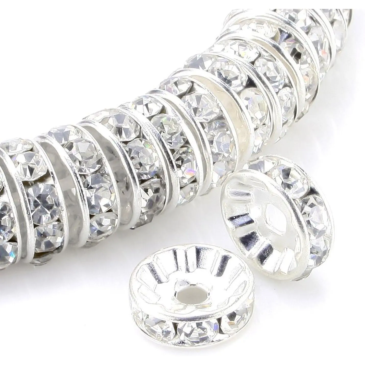 Allb 100Pcs Rondelle Spacer Beads 8mm Silver Plated Czech Crystal Rhinestone for Jewelry Making Loose Beads for Bracelets