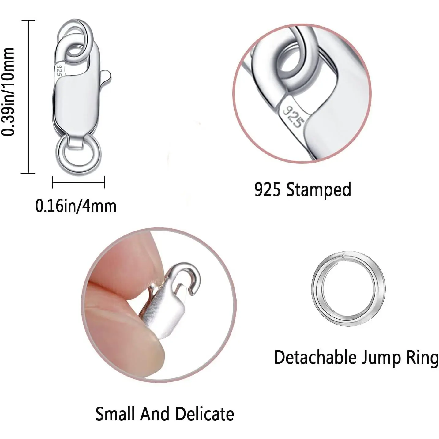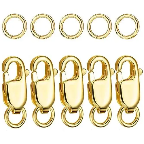 Dailyacc 925 Sterling Silver Lobster Clasp with Closed Jump Rings Gold Necklace Clasps and Closures for Jewelry Bracelet Extender,Made in Italy