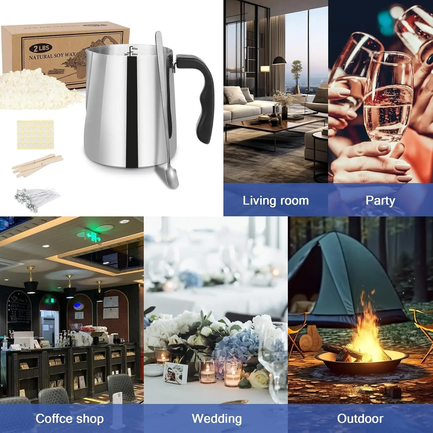 SAEUYVB Candle Making Kit - Natural Soy Wax DIY Candle Making for Adults, Including 2lbs Soy Wax Flakes, Pouring Pot, Perfect Kit for Beginners