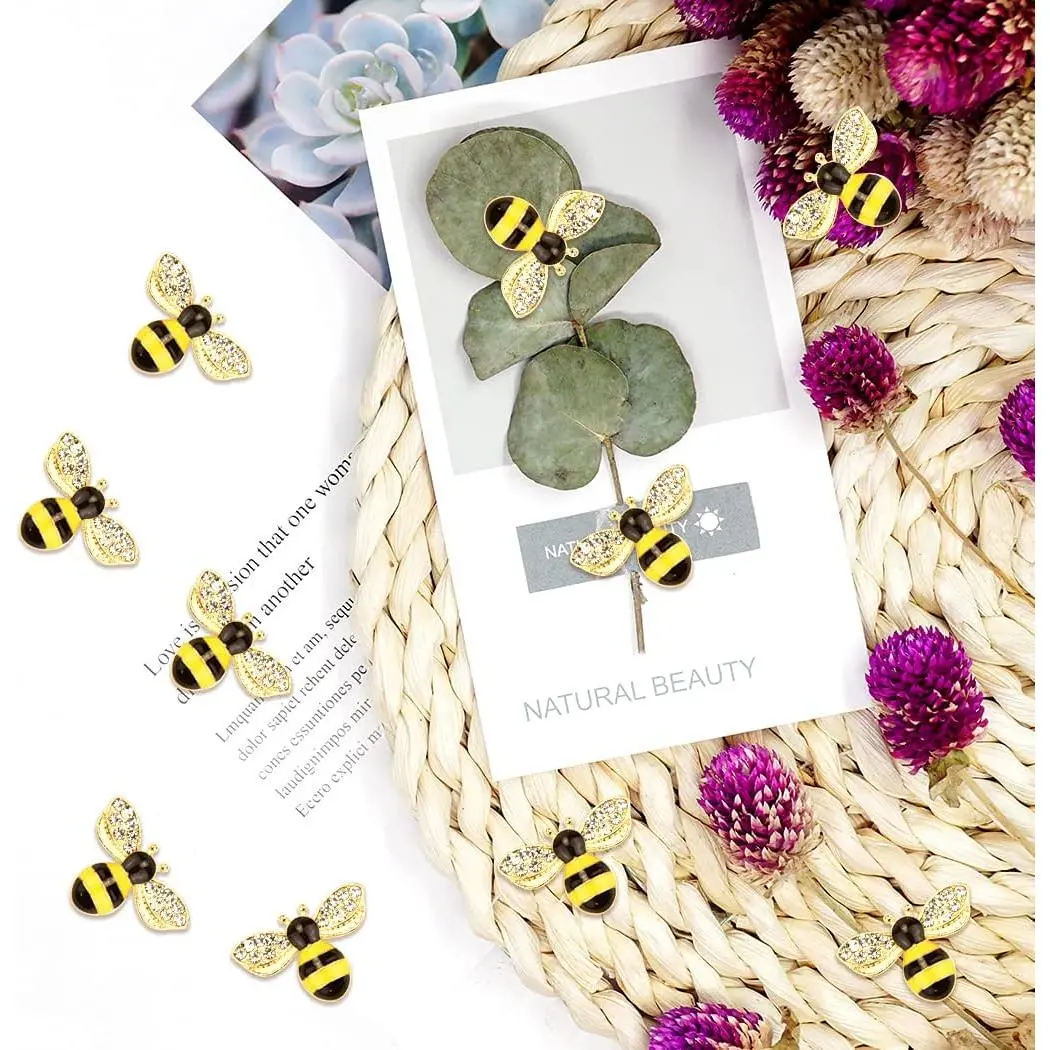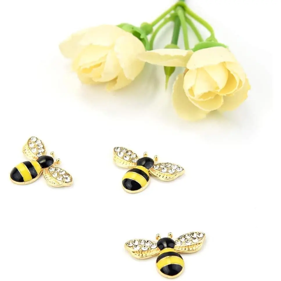 Pistha 20 Pcs Enamel Bee Charms Pendants Rhinestone Enamel Craft Embellishments Crafting for Halloween DIY Handmade Crafts (yellow)