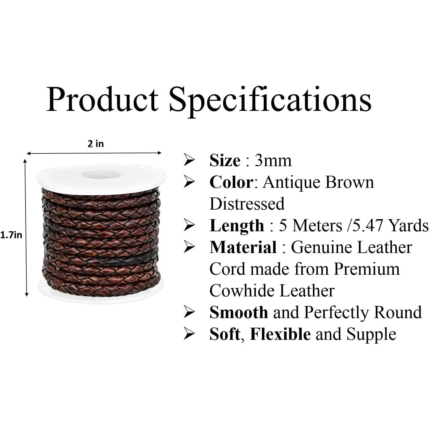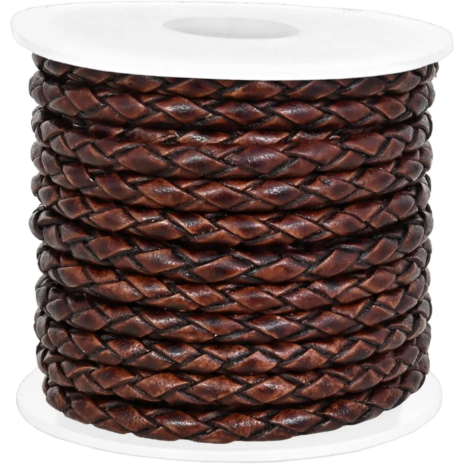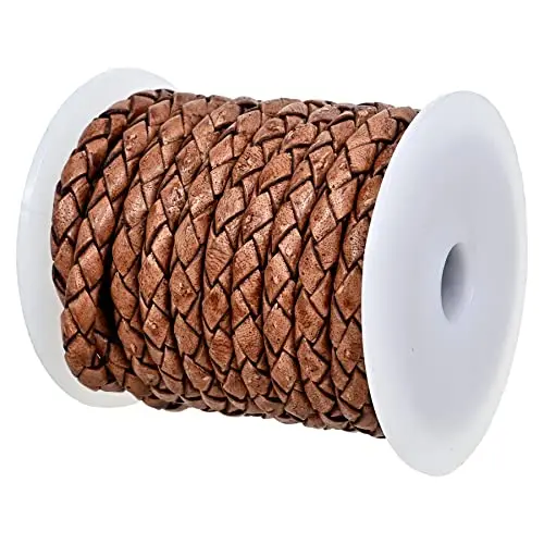GENIQUE Real/Genuine Round Braided Leather Cord String Rope Folded, Leather Rope for Crafts, Jewelry Making, Necklace, Bracelets (5 Metres) (3mm, Antique Brown Distressed)