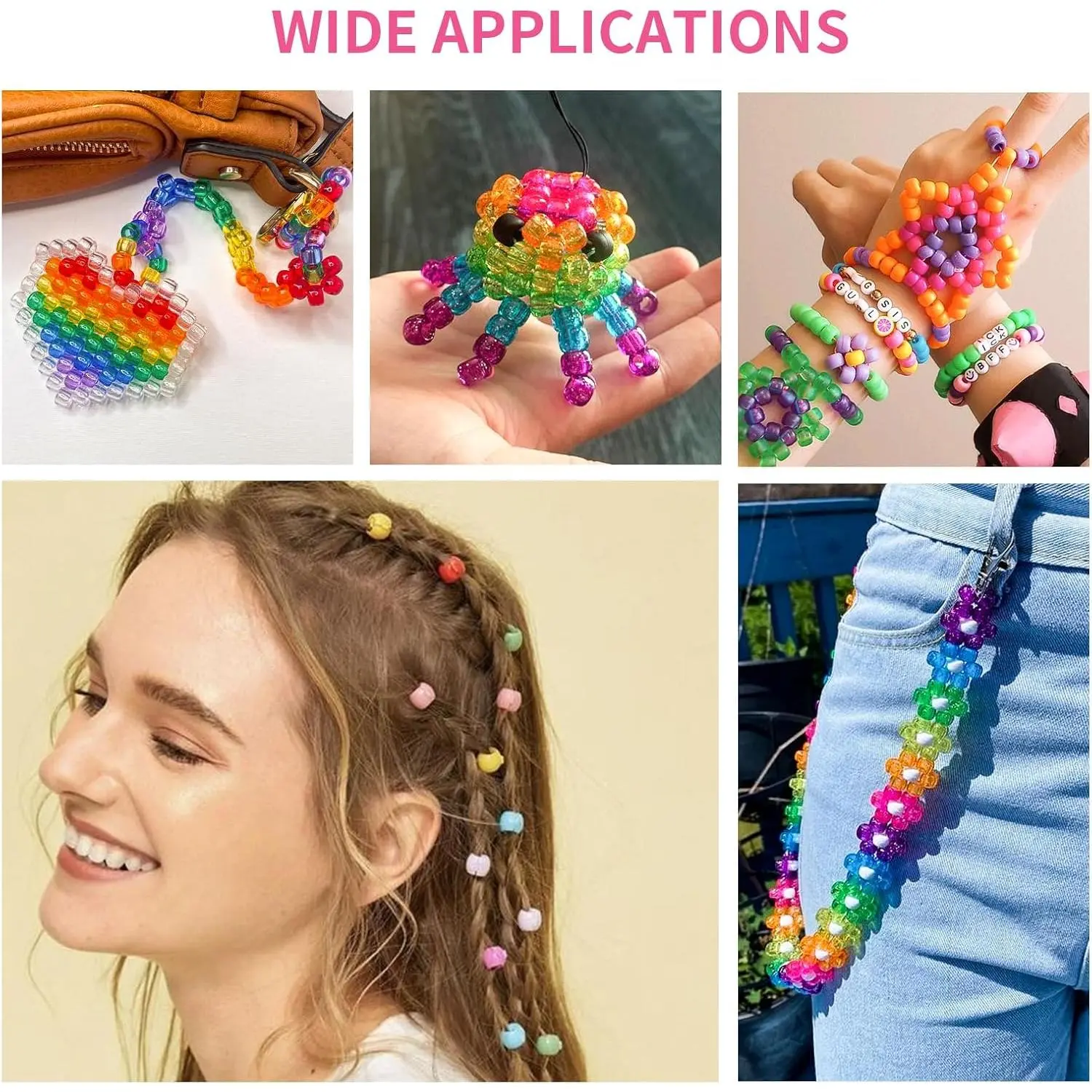 1000+pcs Glitter Pony Beads Bulk, Acrylic 9mm Large Plastic Bead for Bracelets Big Hole Hair Braids Crafts DIY Projects
