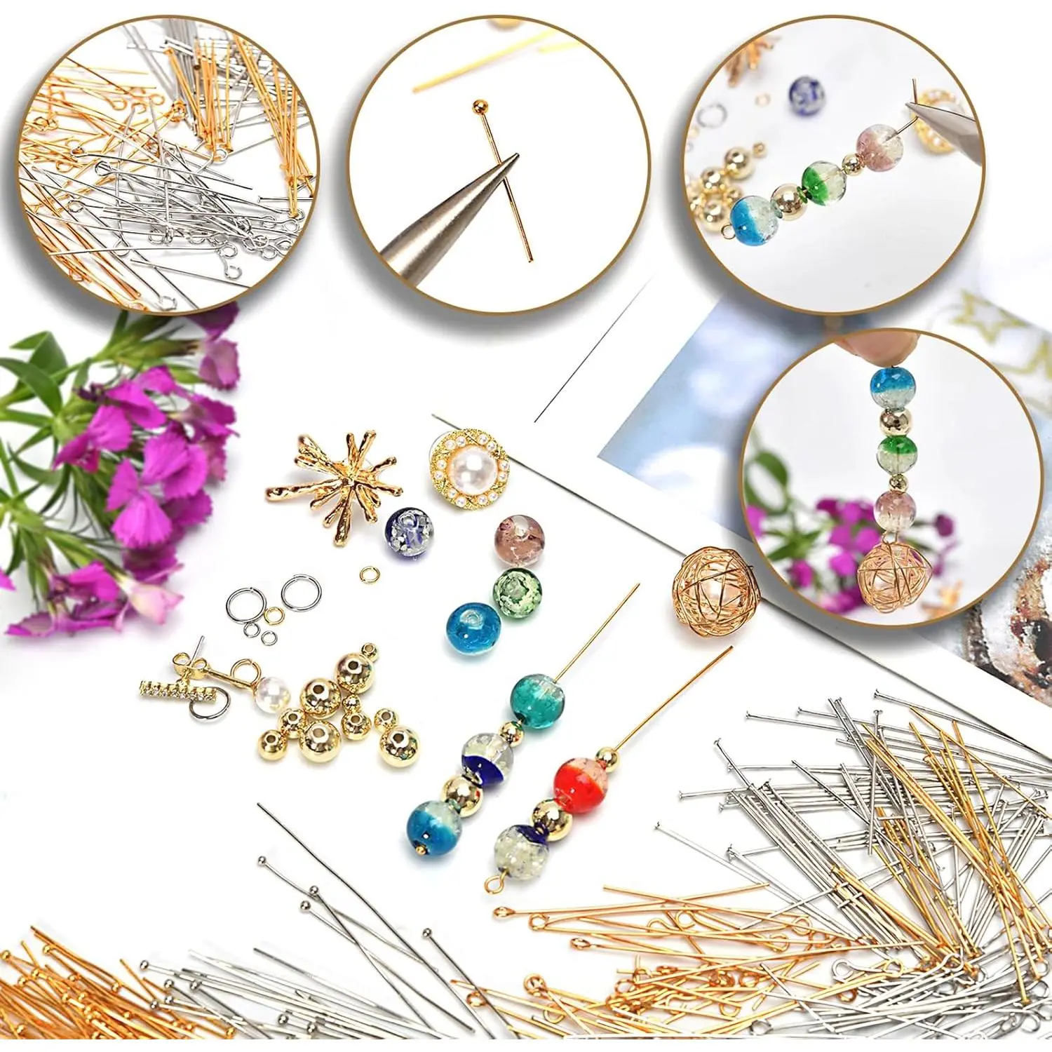 100pcs 18K Gold Filled Ball Pins Non Tarnish Craft Earring Bracelet Jewelry Making Accessories Supplies (50mm (1.96in), Gold-Ball Pin)