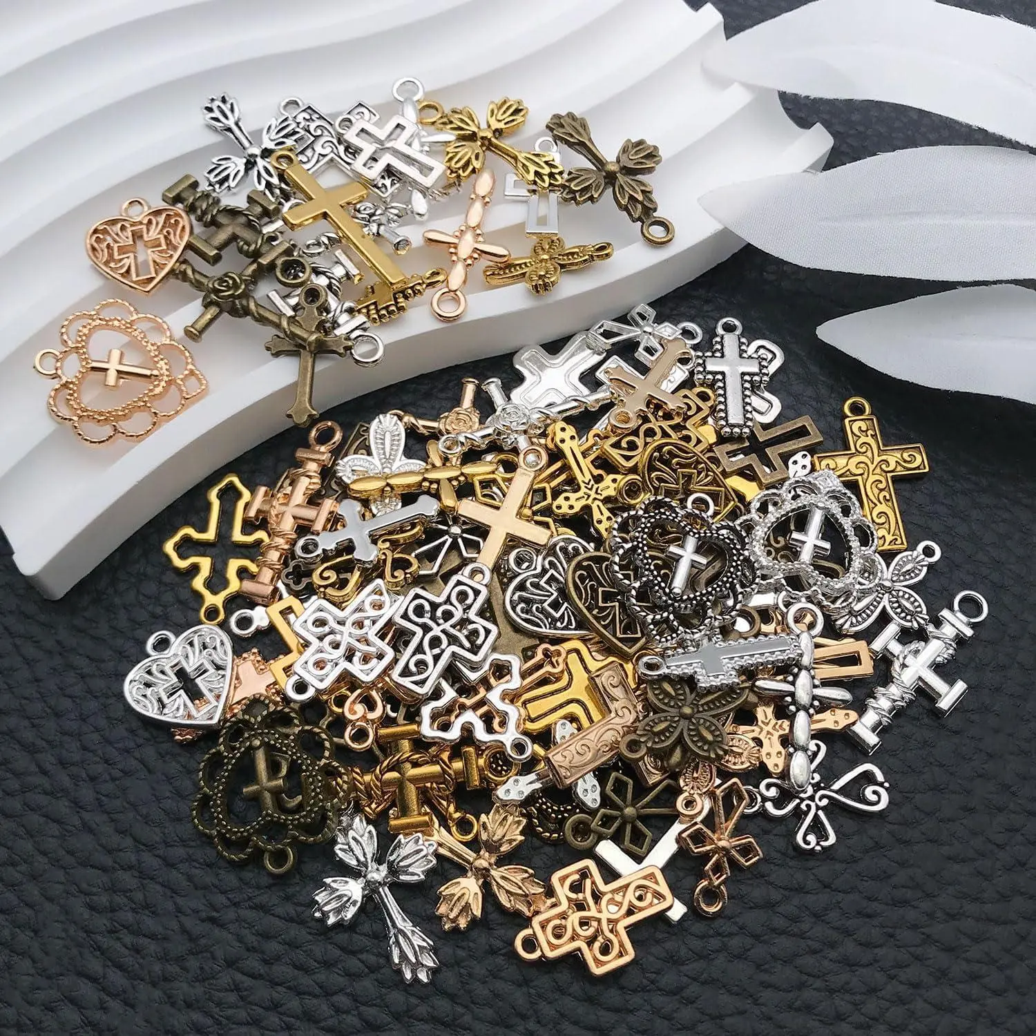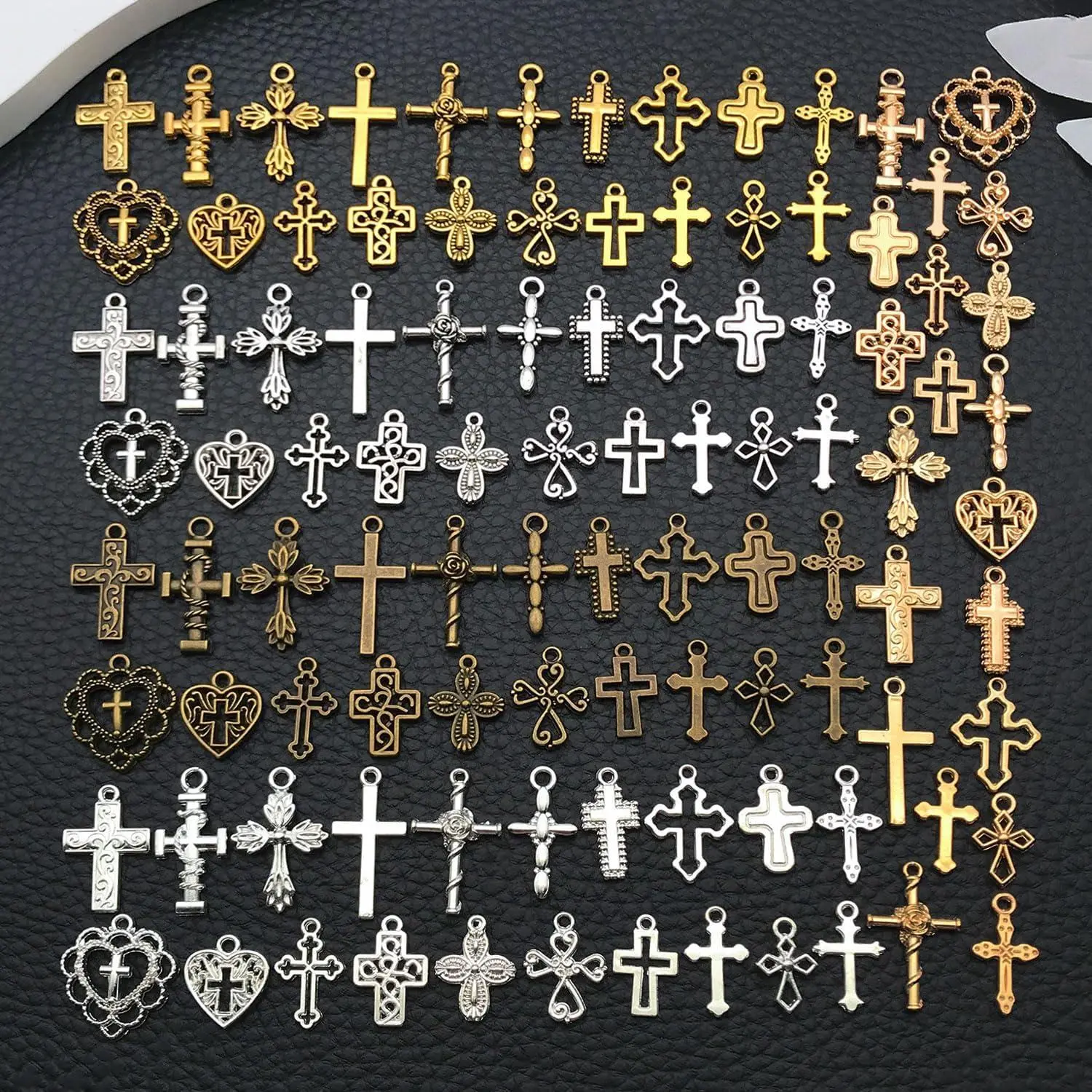 WOCRAFT 100pcs Cross Charms for Jewelry Making Assorted Jewelry Bangle Bracelet Charms Wholesale Mixed Bulk Metal Earring Charms for DIY Necklace Keychain Craft Supplies (SN910)