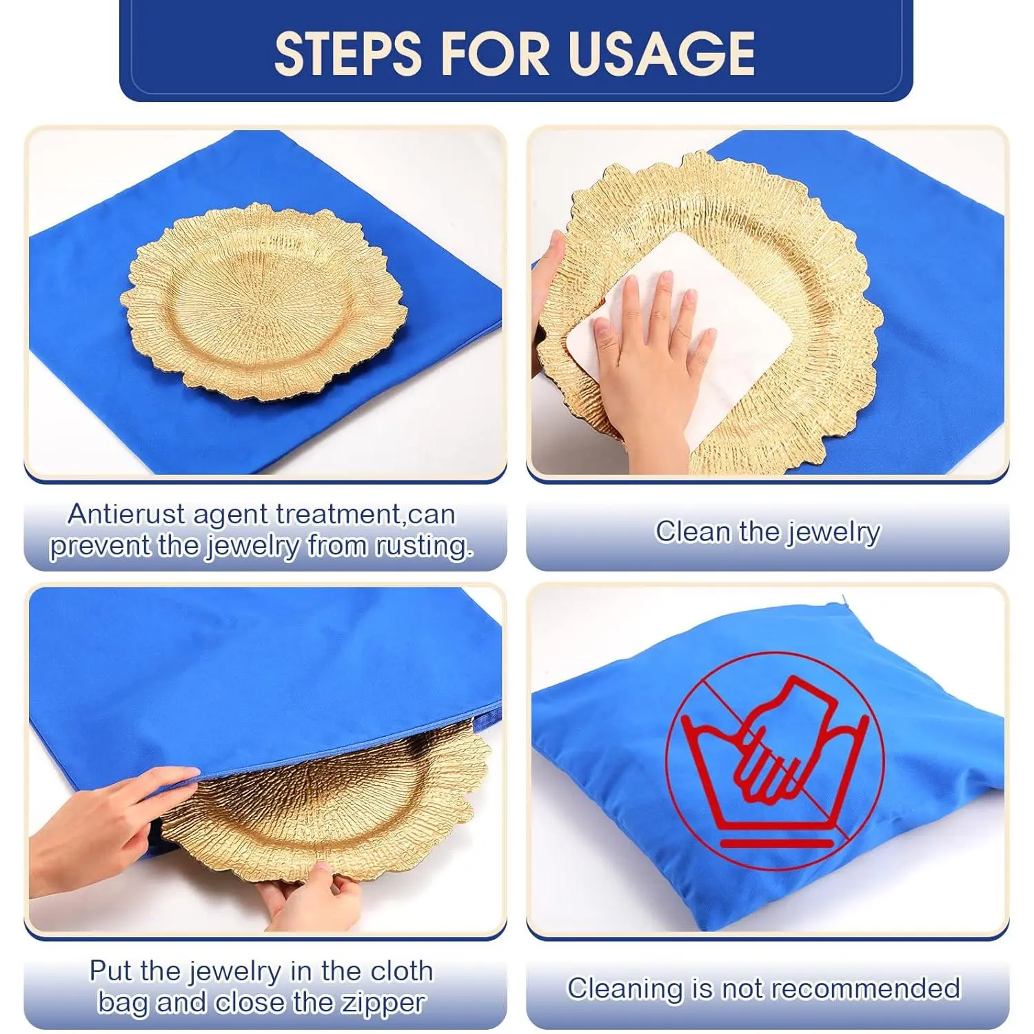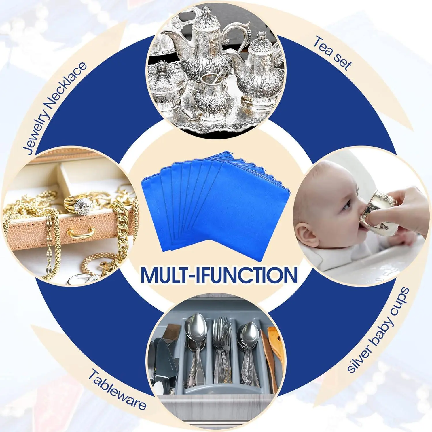 Sanwuta 8 Pcs Zippered Silver Storage Bags Anti Tarnish Silver Pouches Keeper Jewelry Storage Protector Bags(18 x 18 Inch,Navy Blue)