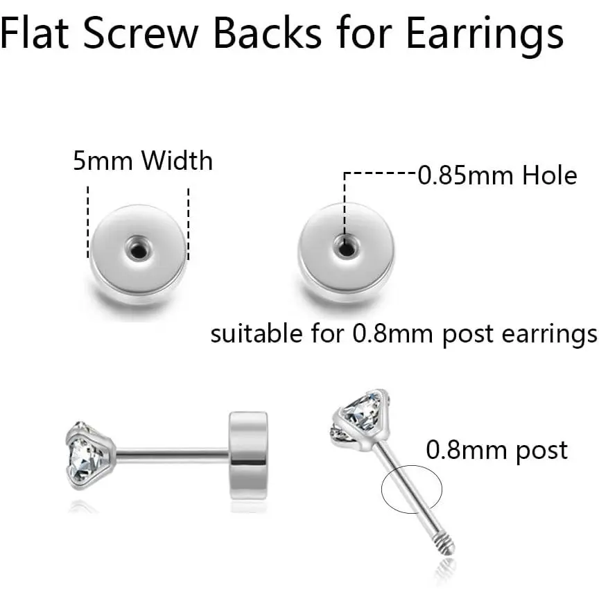 Renkovte Flat Screw Backs Replacement for Stud Earrings,10Pcs Stainess Steel Flatbacks for Ear Piercing,Security Screw Backs to Prevent Missing Earrings (Silver)
