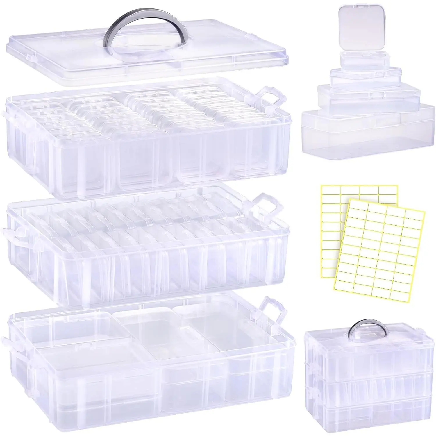 Funtopia Bead Organizers and Storage, 56 Pcs Small Plastic Containers with Lids and 3-Tier Stackable Storage Box, Mini Clear Organizers for Jewelry Toys Craft Storage (4 Sizes)