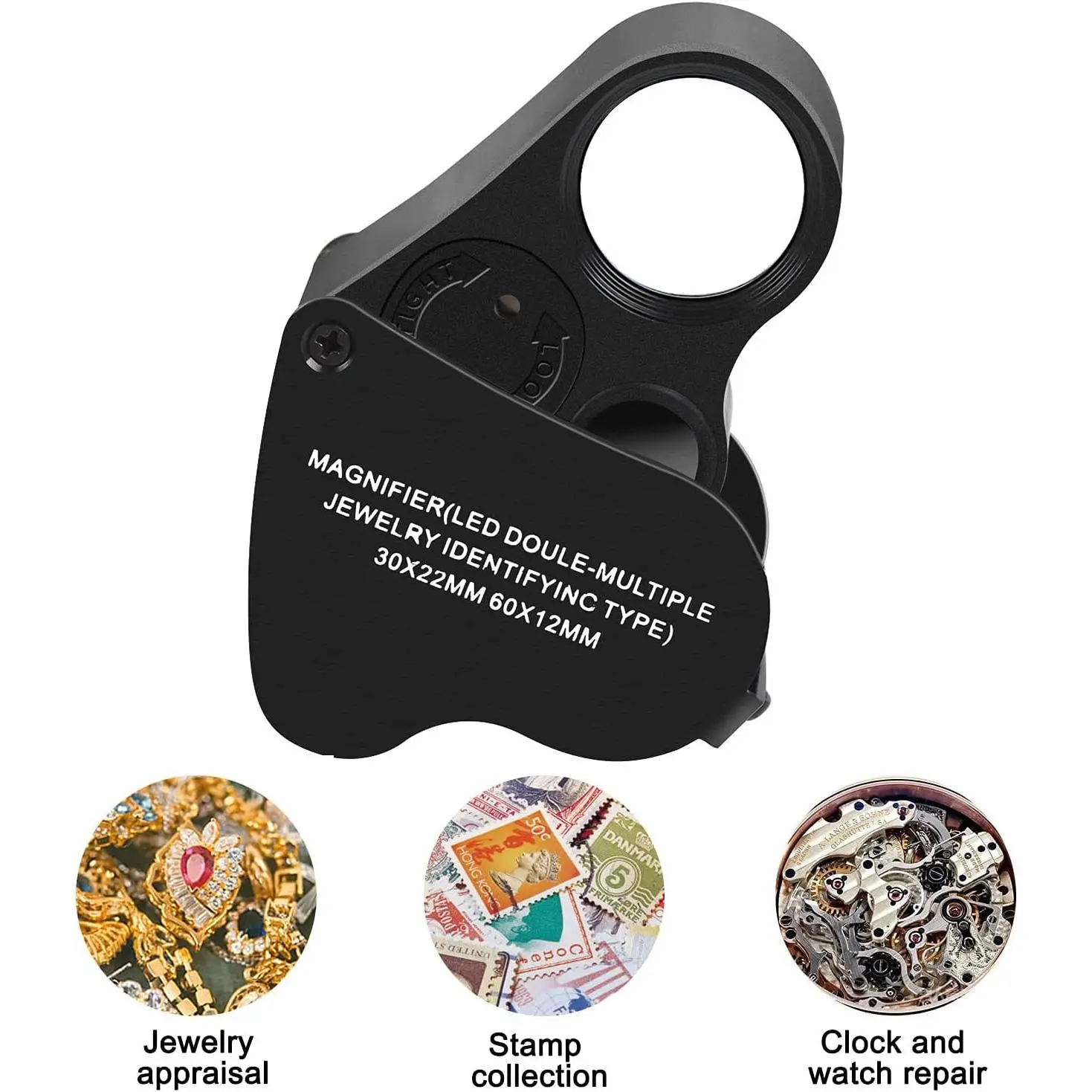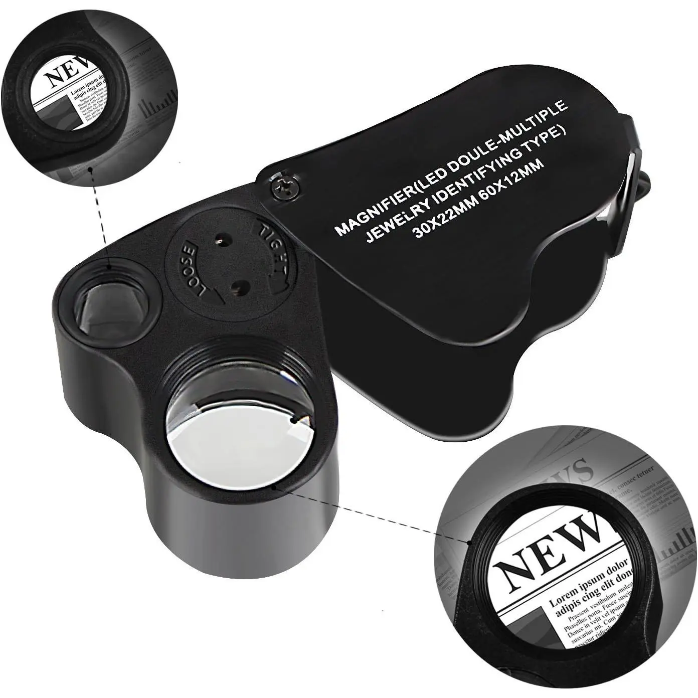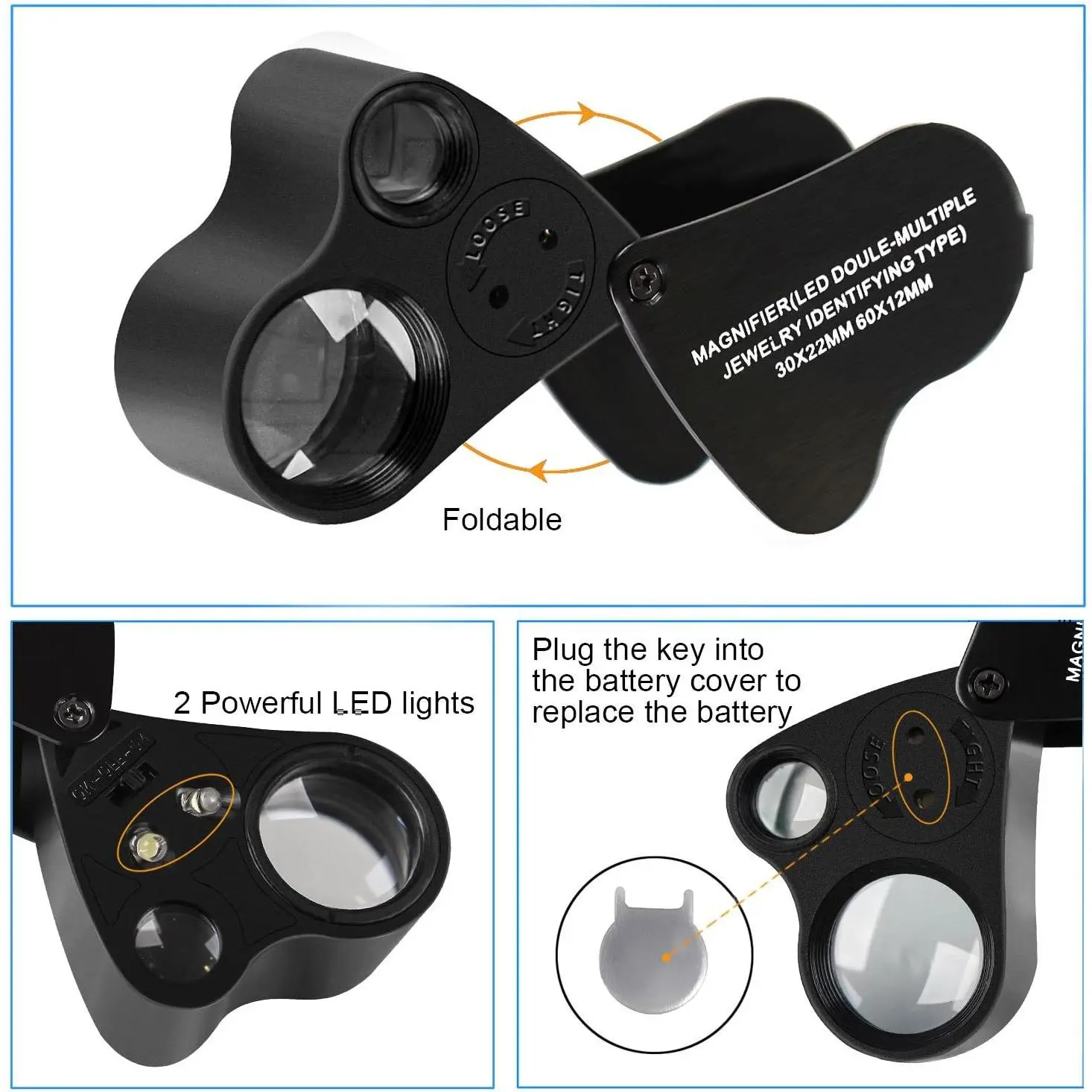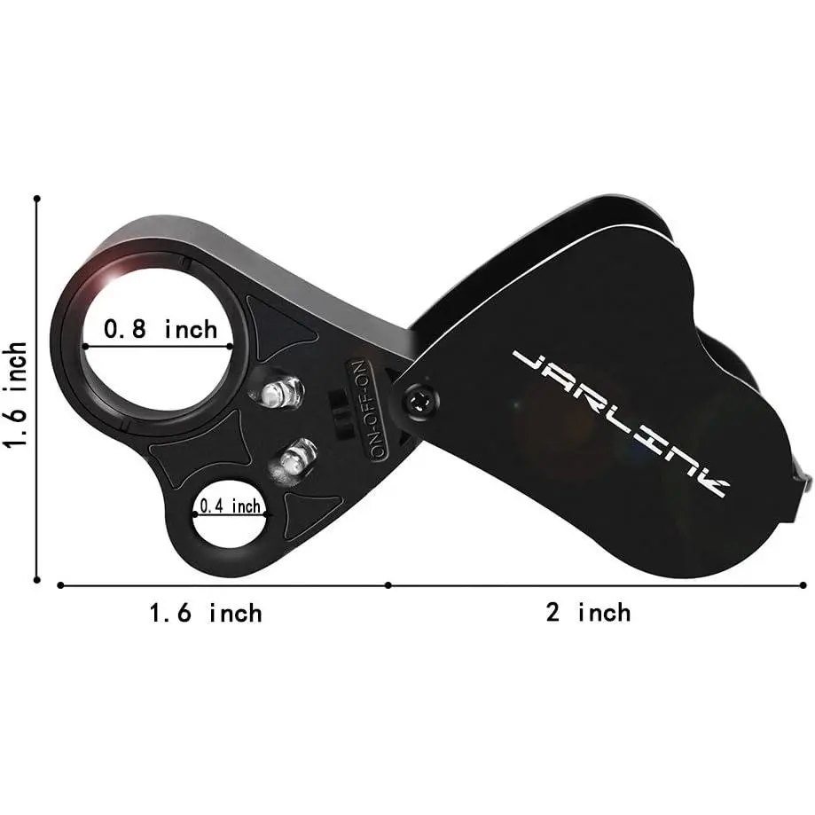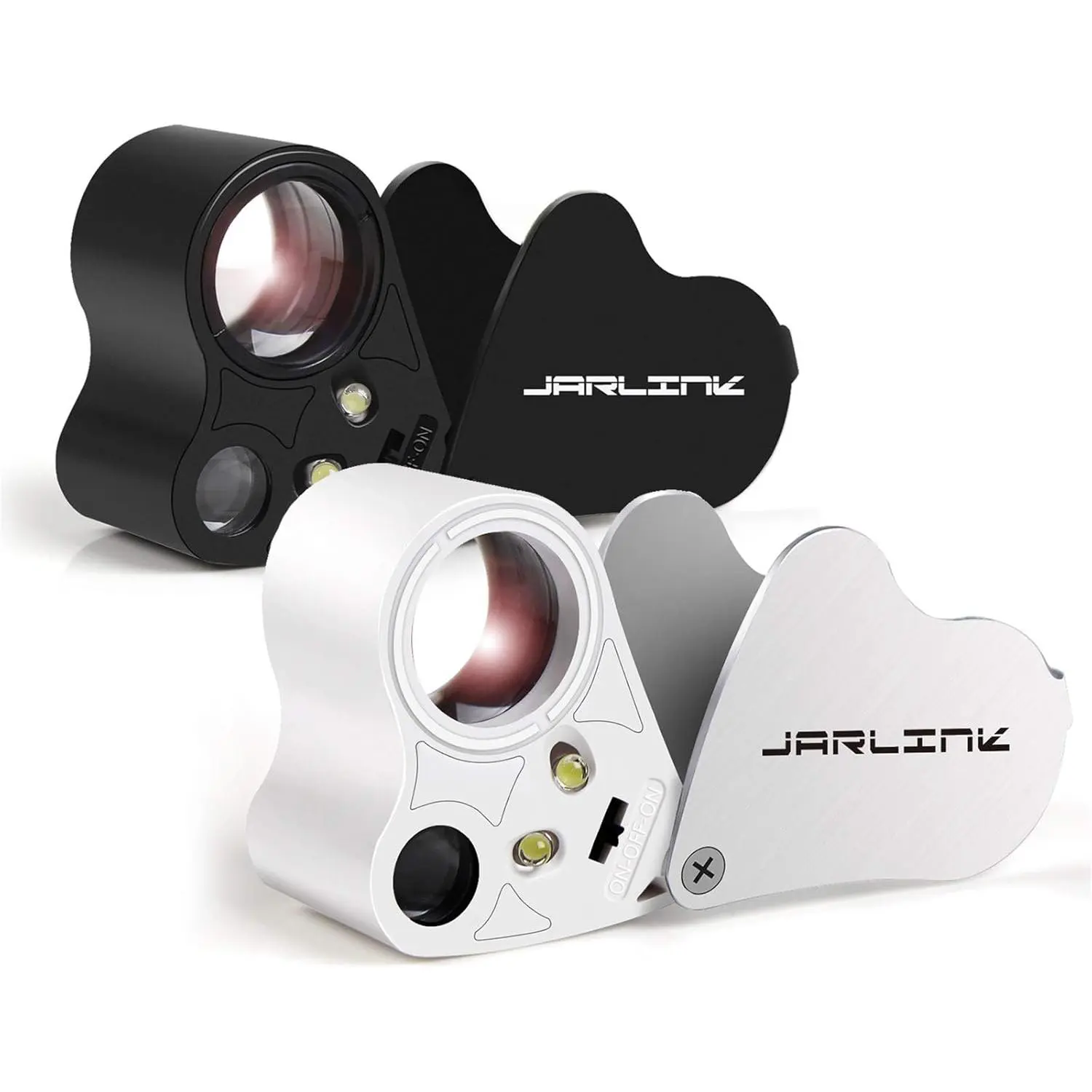 JARLINK 2 Pack 30X 60X Illuminated Jewelers Loupe Magnifier, Foldable Jewelry Magnifier with Bright LED Light for Gems, Jewelry, Coins, Stamps, etc (White & Black)