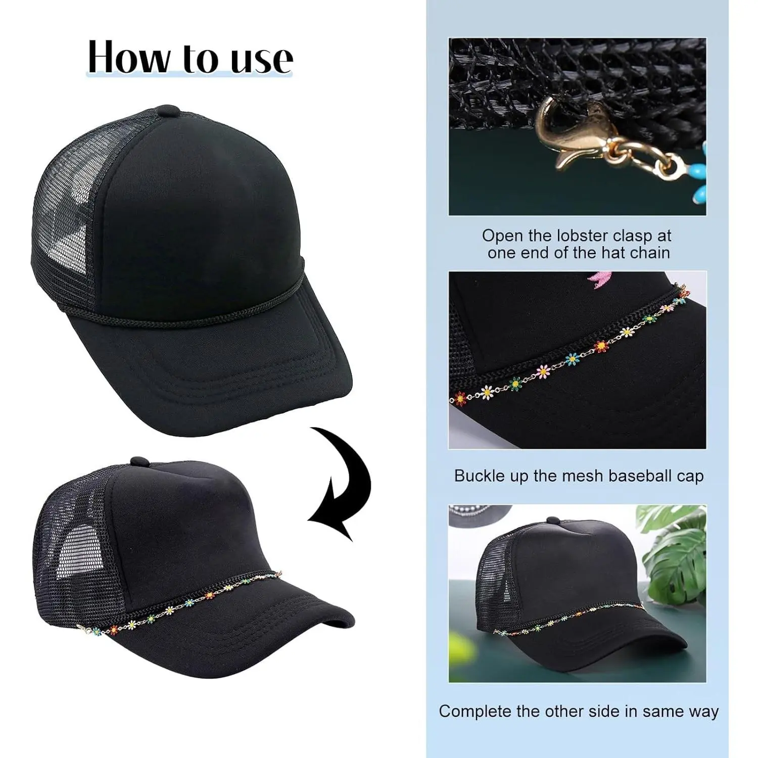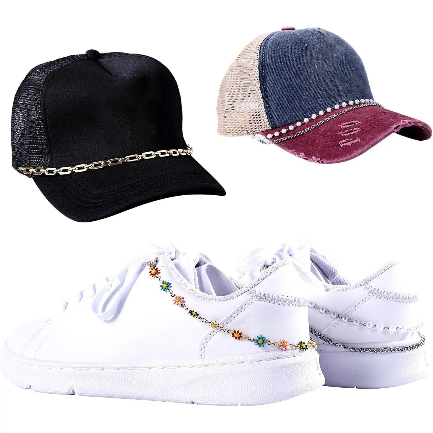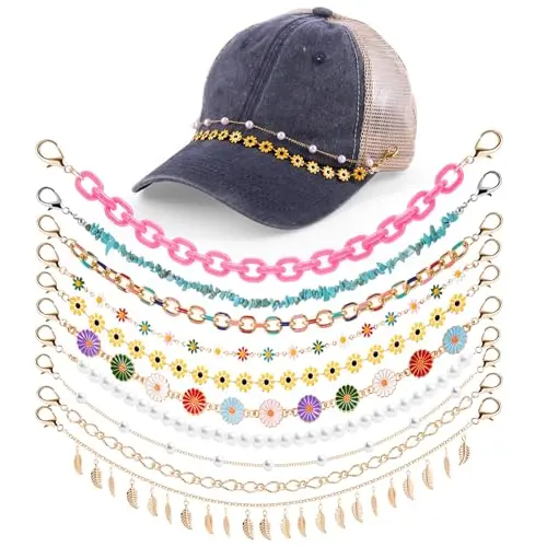 14 Pcs Trucker Hat Chains, Bulk Trucket Hat Charms Chains for Women Men, Bill Decoration Detachable DIY Metal Chain