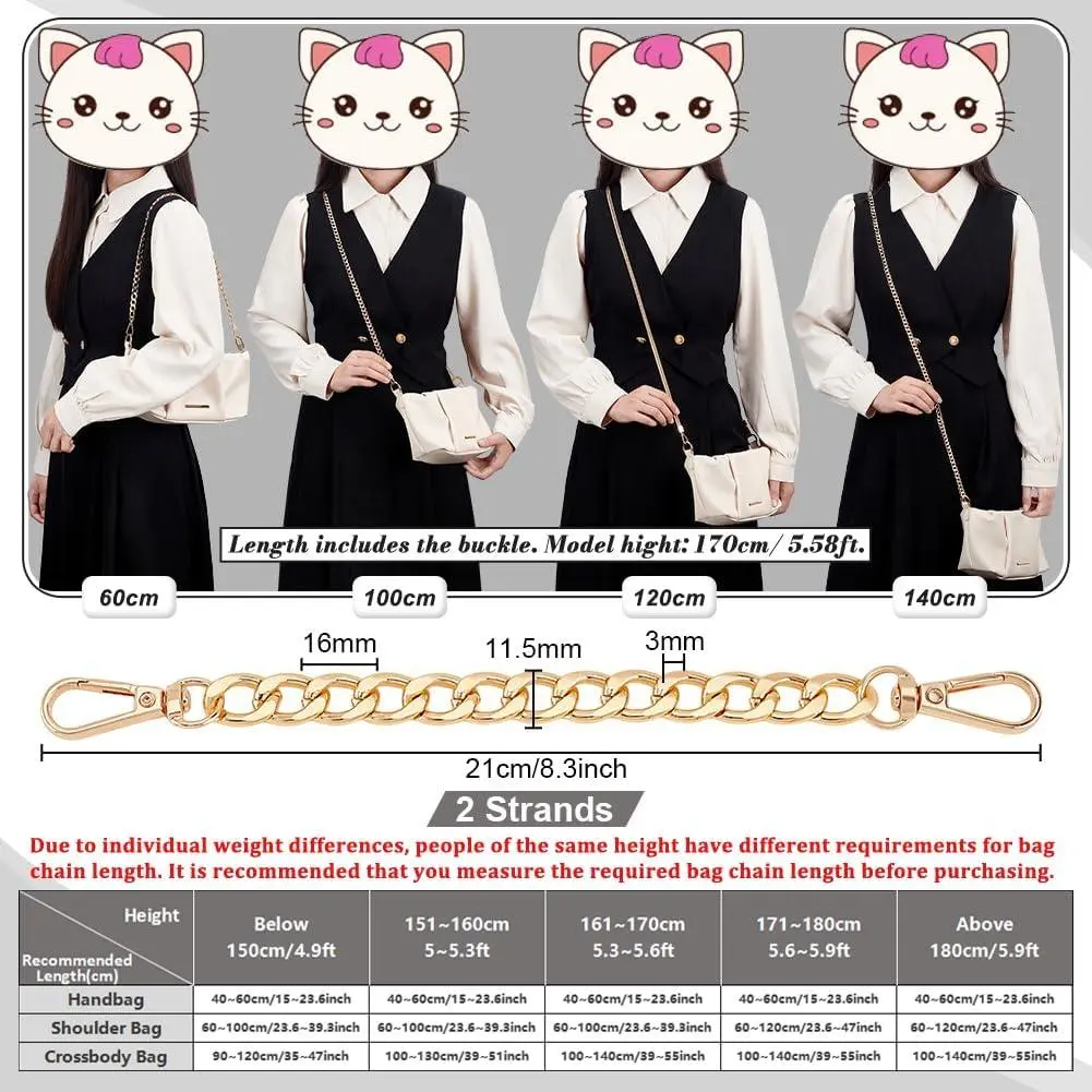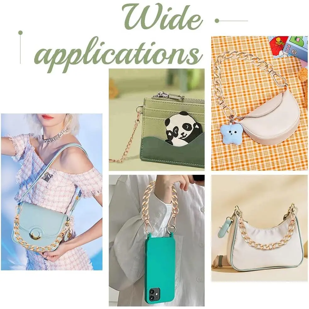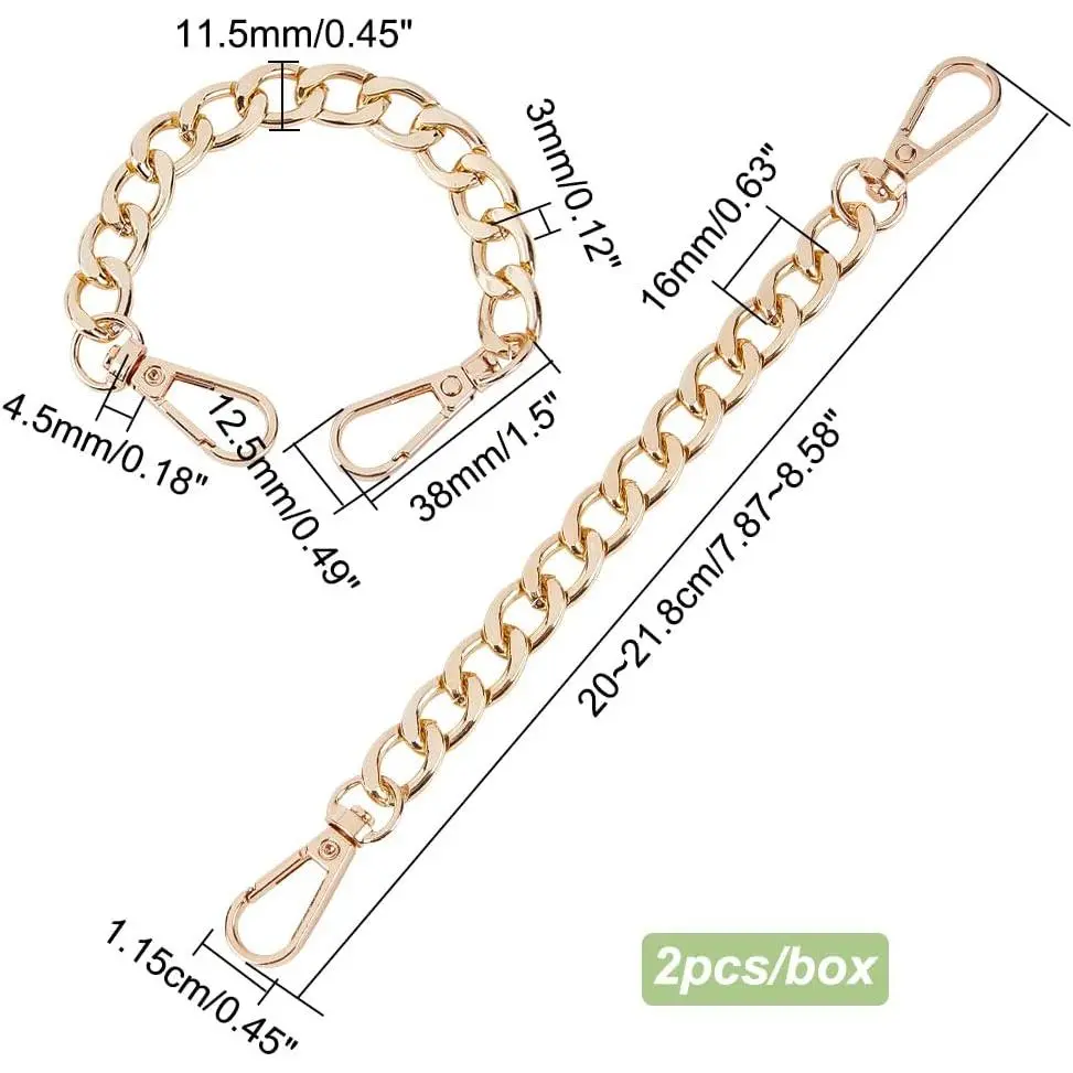 PH PandaHall Purse Extender, 2 Pack 7.8 Inch Golden Aluminum Bag Flat Chain Strap with Alloy Swivel Clasps Handbag Chain Straps Metal Bag Strap Replacement Purse Clutches Handles