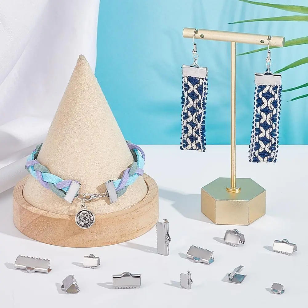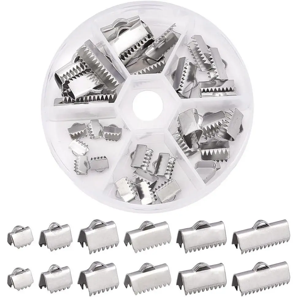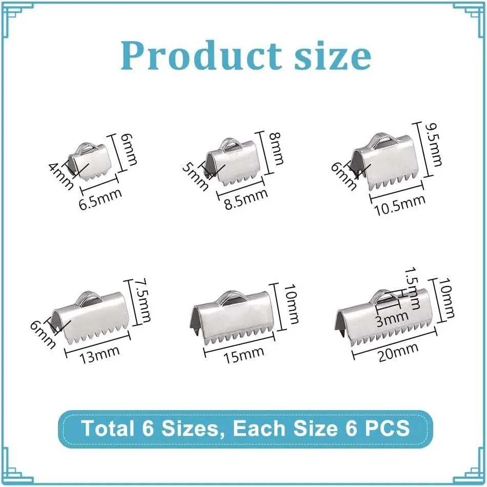 PH PandaHall 36 Pcs 304 Stainless Steel Ribbon Bracelet Bookmark Pinch Crimp Clamp End Findings Cord Ends Fasteners Clasp Leather Crimp Ends 6 Sizes 6.5-20mm for Jewelry Making