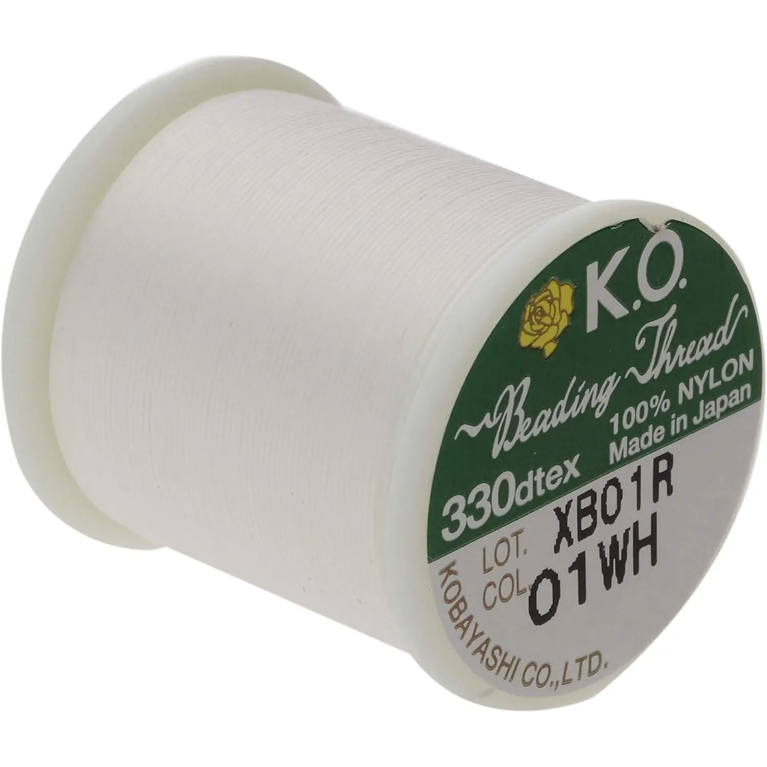 KO Nylon Beading Thread, White Color, Japanese Pre-Waxed 100% Nylon, 330TEX, Tangle Resistant Knotting Cords, 50m /55 yds Spool, Use for Seed Bead Projects, Loom Work & Bead Weaving