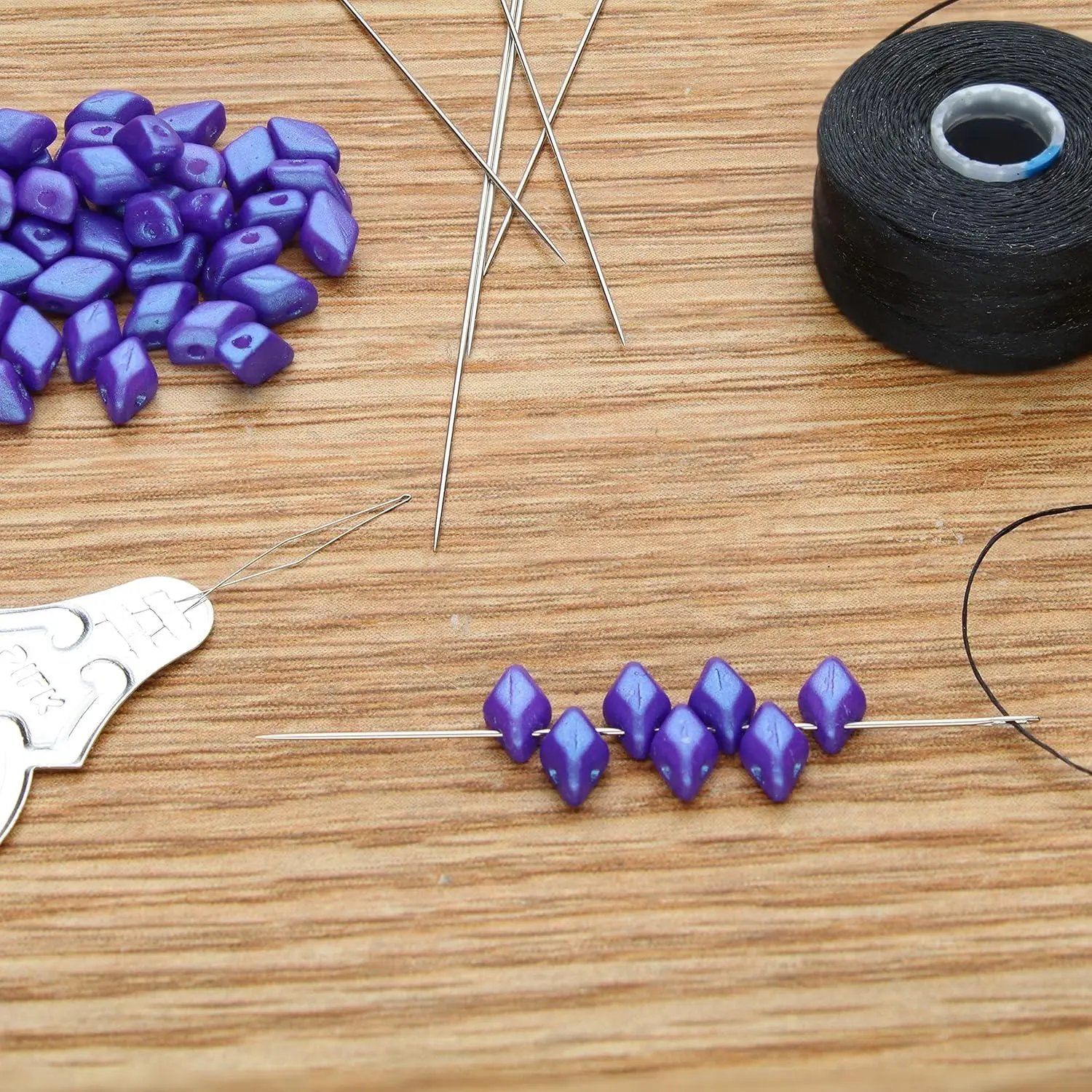 Miyuki Extra-Fine Beading Needles – 6 Pack, Assorted Sizes, 0.4mm Diameter – Needle Threader Included – Made in Japan – Use with Delica Beads for Jewelry Making and Other Seed Bead Projects