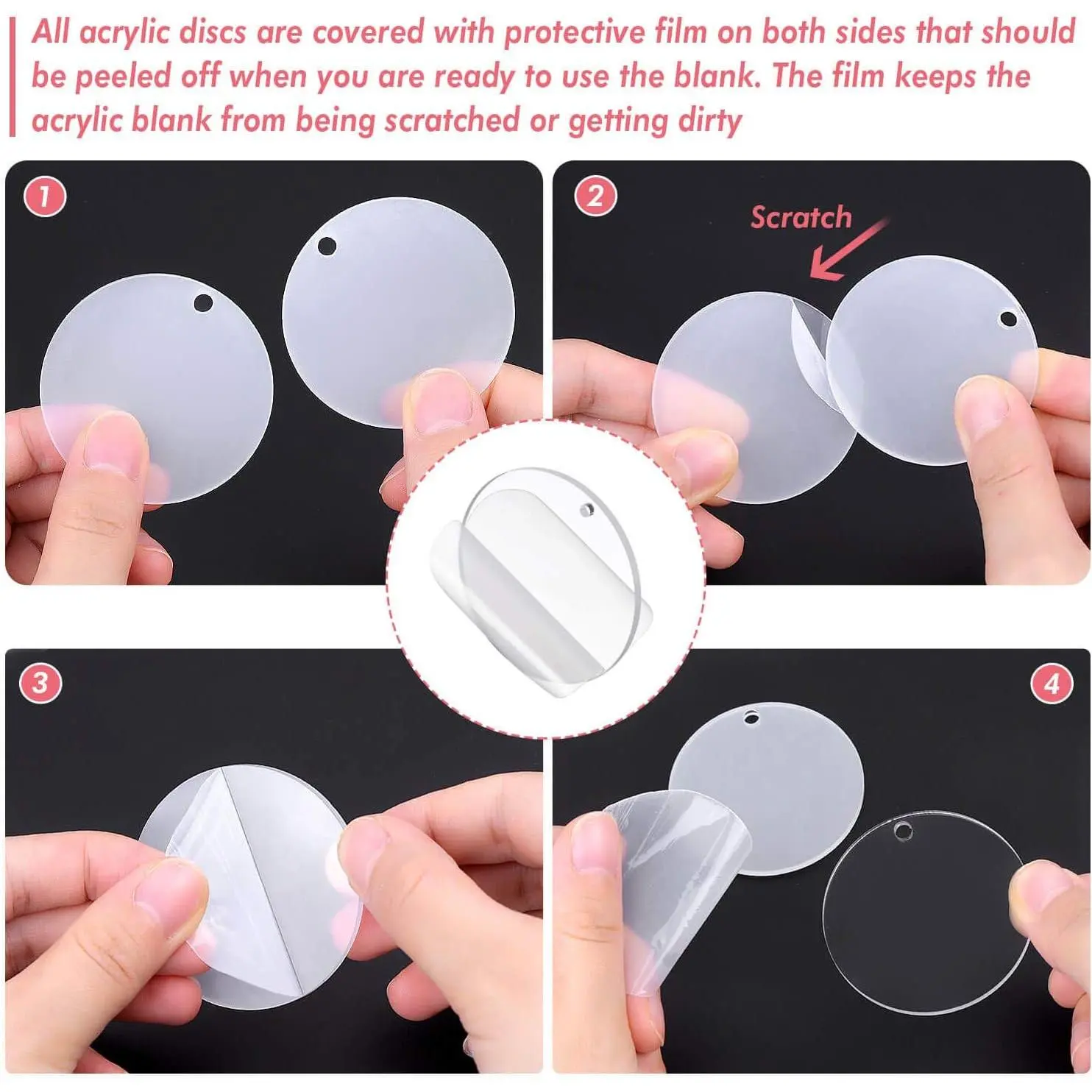 Audab Acrylic Keychain Blanks Kit - 120pcs Including Clear Acrylic Blanks, Keychain Tassels, Key Rings, Jump Rings for DIY Key Chain Vinyl Crafting