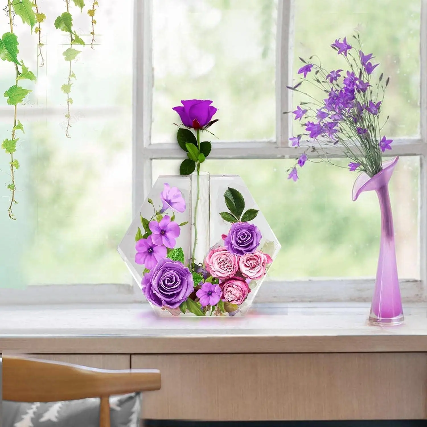 Large Hexagon Silicone Molds for Resin, Glossy Deep Epoxy Resin Molds 9" w/3 Test Tubes,3D Large Resin Molds for Flowers Preservation,Resin Art, DIY Wedding,Anniversary, Birthday Gifts, Home Decors