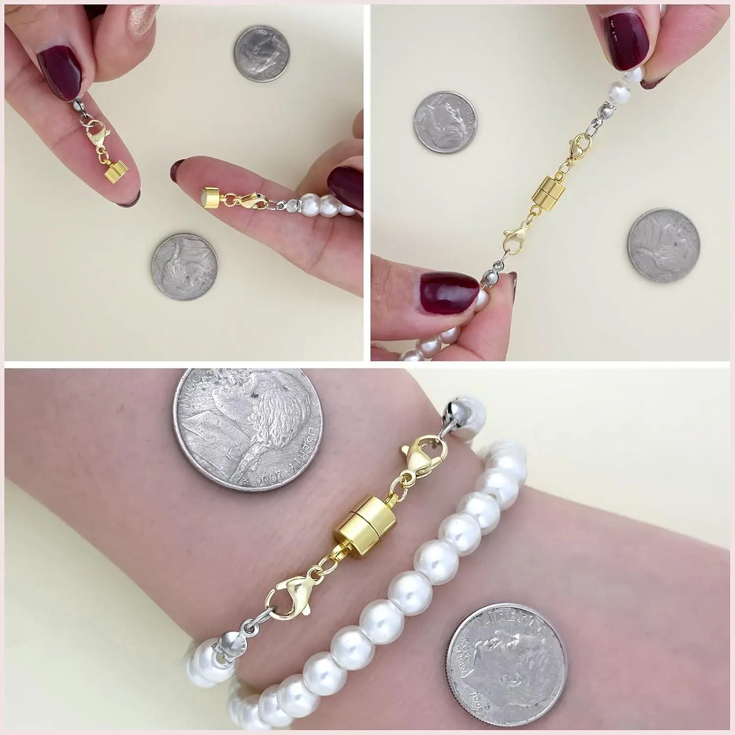OHINGLT Magnetic Necklace Clasps and Closures with Double Lobster, Extra Strong Bracelet & Necklace Extender for Women, Magnet Jewelry Clasp Converter for Seniors