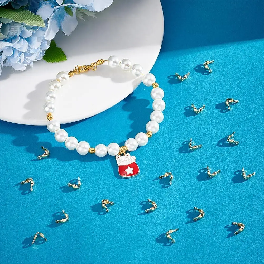 UNICRAFTALE 120pcs Golden Bead Tips Knot Covers Stainless Steel Calotte Ends Open Clamshell Knot Covers Fold-Over Bead Tips Small Hole End Caps for Knots & Crimp Findings Jewelry Making, 4mm Inner Dia