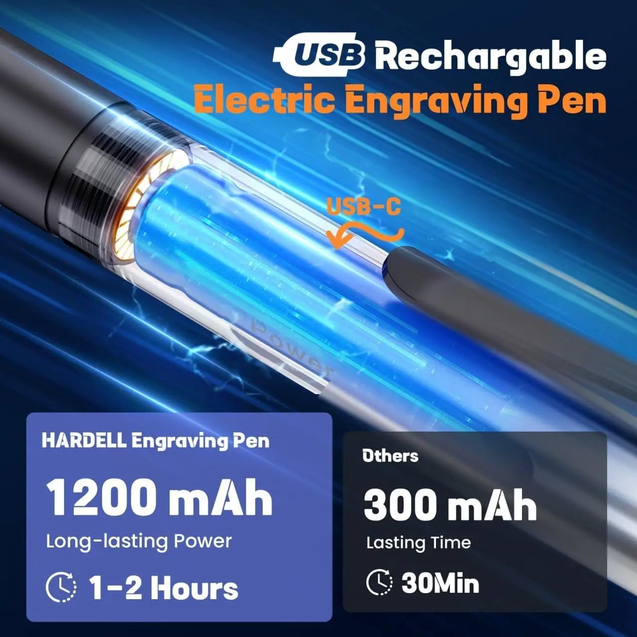 HARDELL Engraving Pen, Cordless Engraving Tool with 37000RPM, USB Rechargeable Metal Pen Engraver for Artists & DIYers, Electric Engraving Pen for Metal, Wood, Glass and Plastic - Beginner Friendly