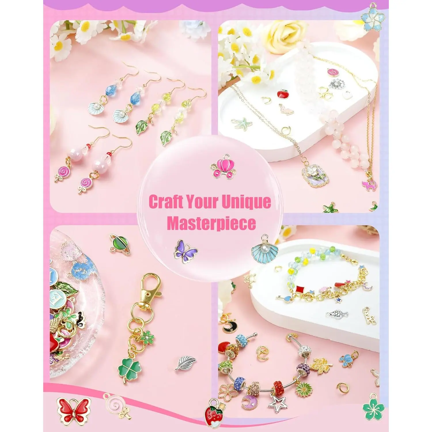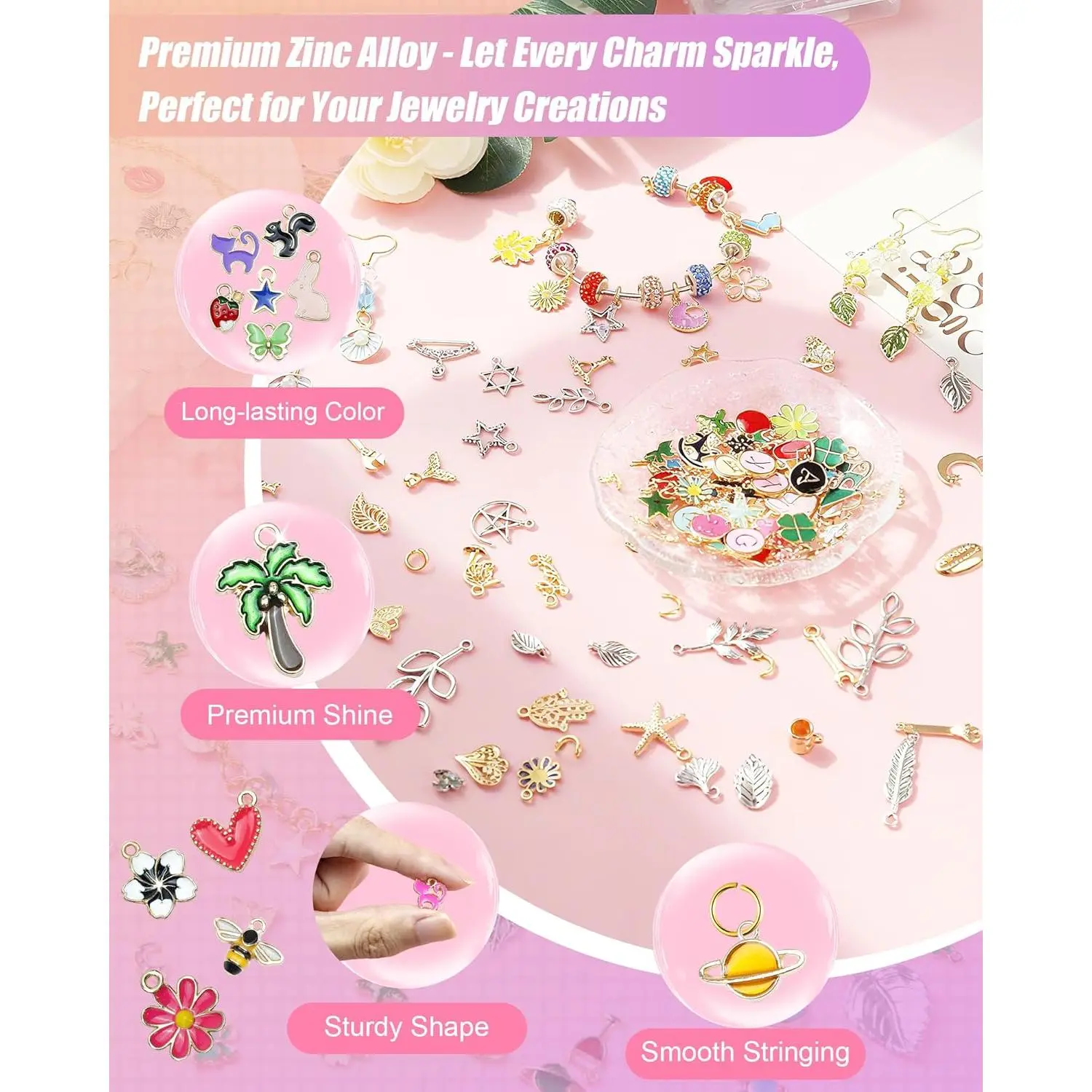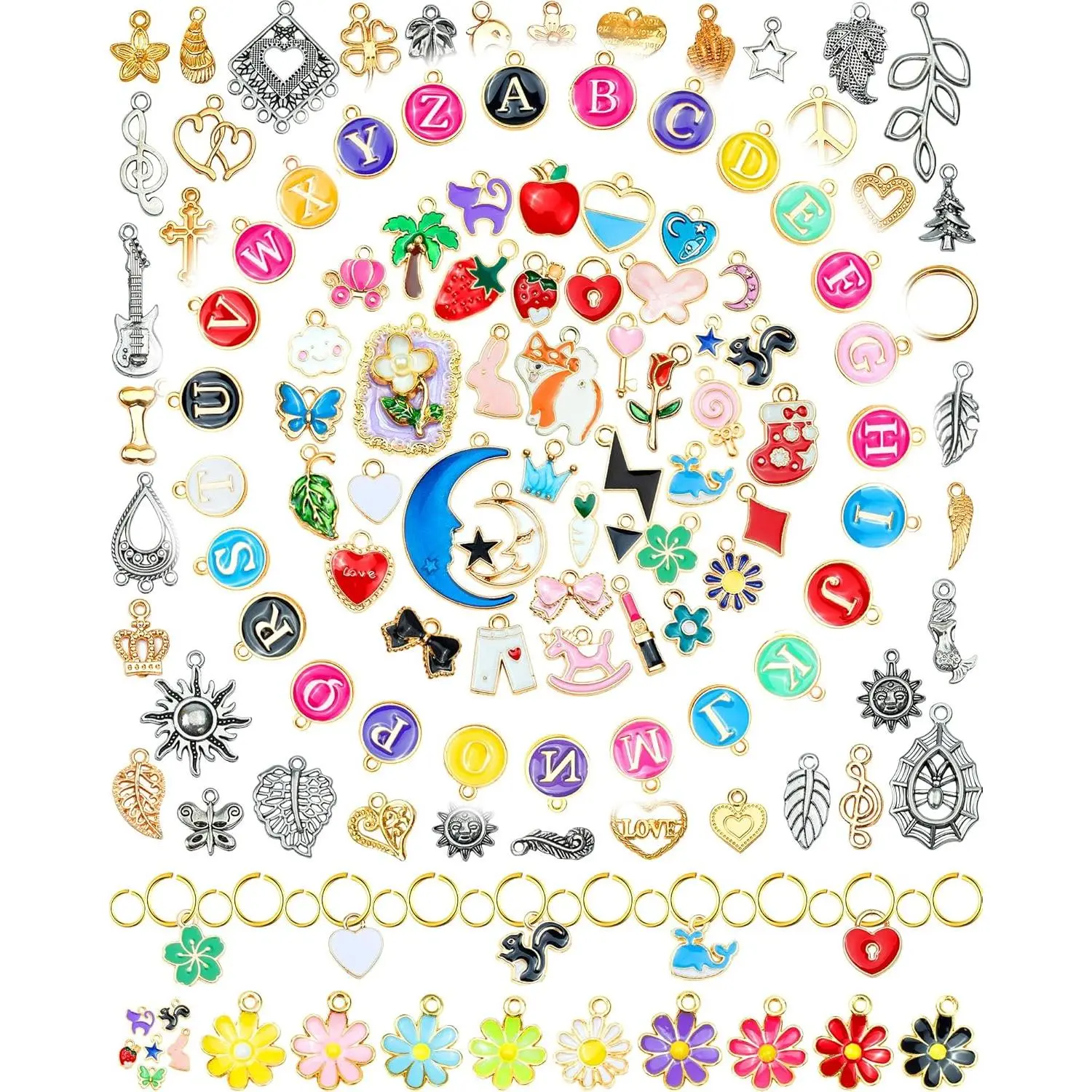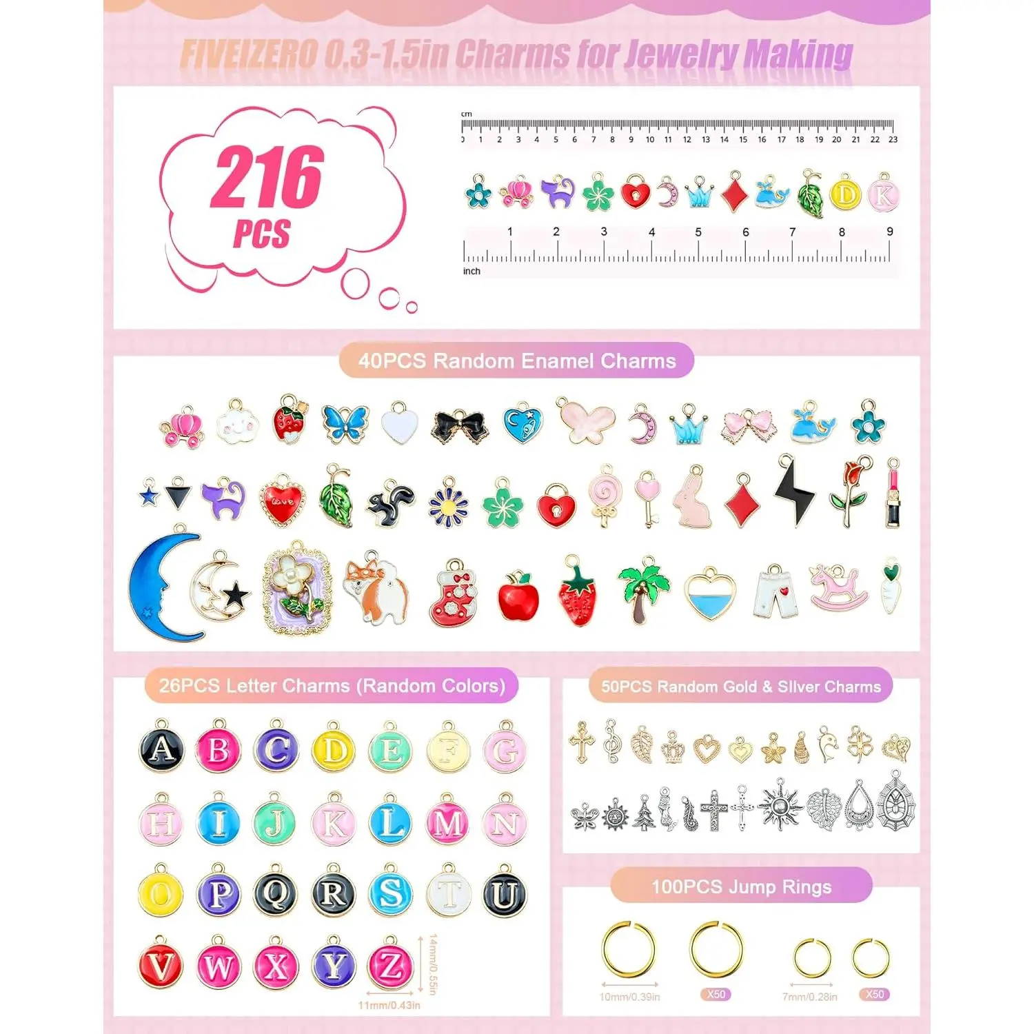 FIVEIZERO 216PCS Bracelet Charms for Jewelry Making – Assorted Gold & Silver Metal Enamel Pendants with Jump Rings for Necklaces, Earrings & DIY Jewelry Crafts(Mixed Color)