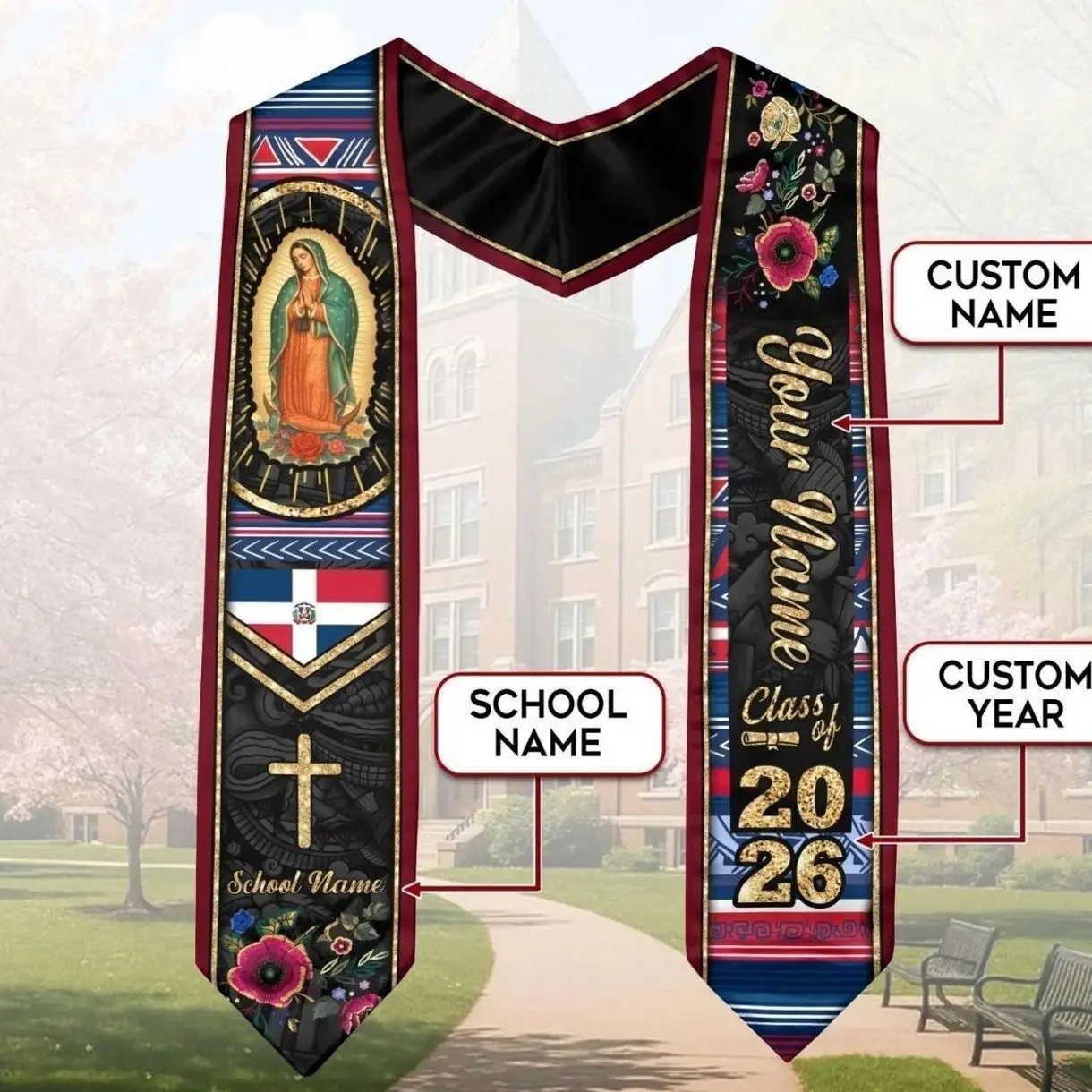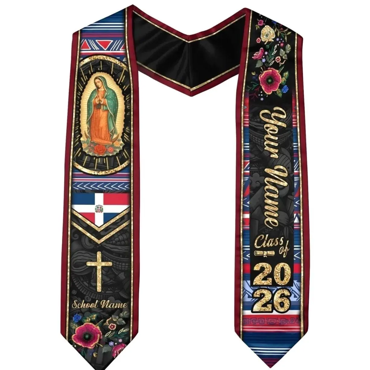 5. Personalized Dominicans American Flag Graduation Sash 2026, Dominican Republic Graduation Stole Customize 2026, Custom Graduation Stole 2026
