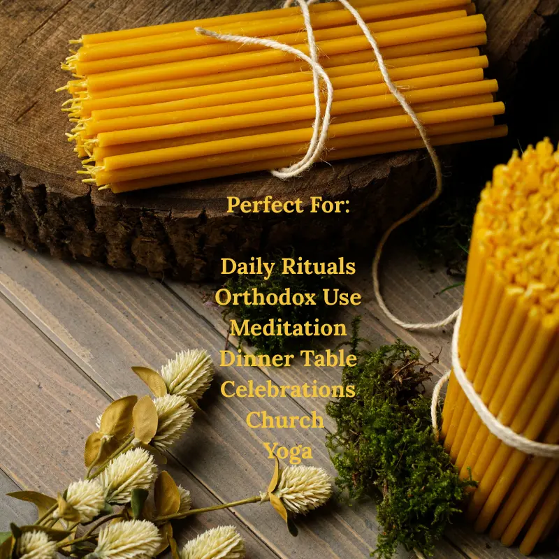 Bulk beeswax church candles for Orthodox prayer, altar use, meditation and daily spiritual rituals. Designed for church holders and home prayer. Clean burning, natural beeswax, ideal for churches, monasteries, and bulk use.
