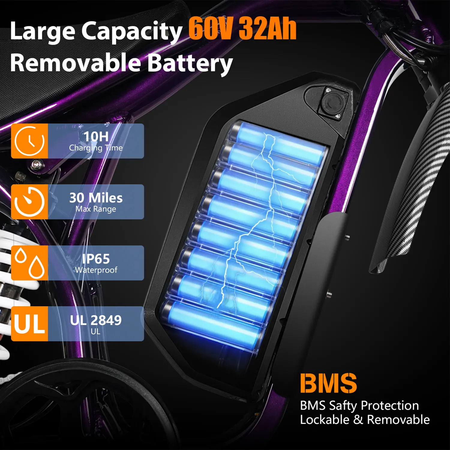 ·3000W Motor = Superb Speed and Climbing Power: Rapid acceleration, easily conquering gradients of 35° and above.