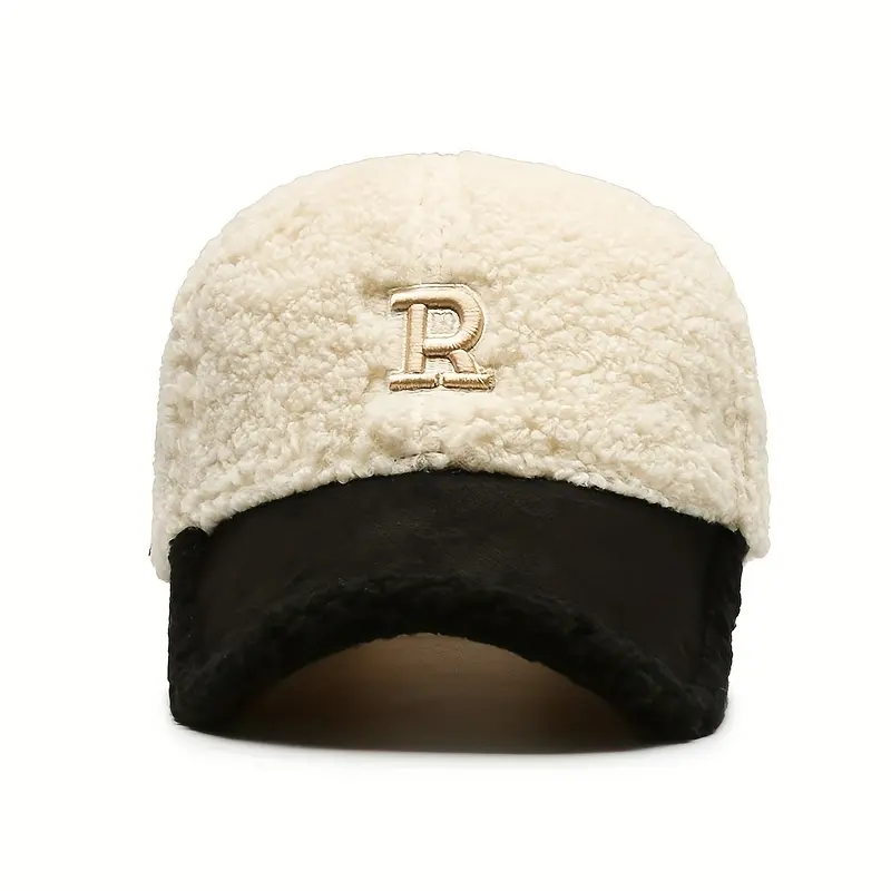 Letter R Teddy Plush Warm Baseball Cap Fashionable Versatile Duckbill Hat