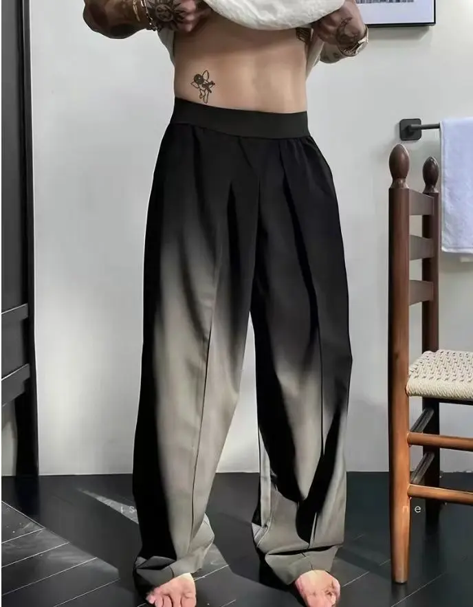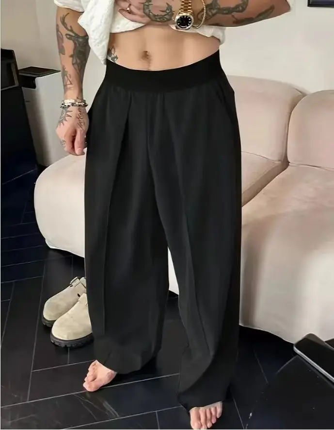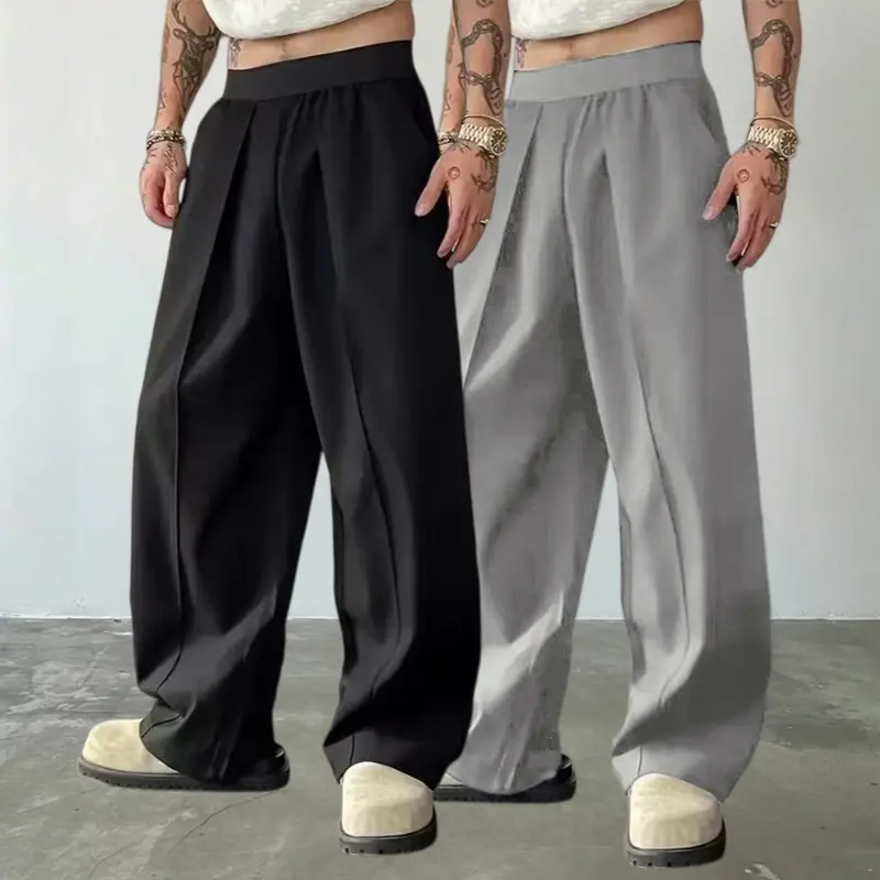 2PCS Men’s High-Waist Pleated Wide-Leg Pants, Elastic Waist Loose Streetwear Dress Pants for Casual Outfits