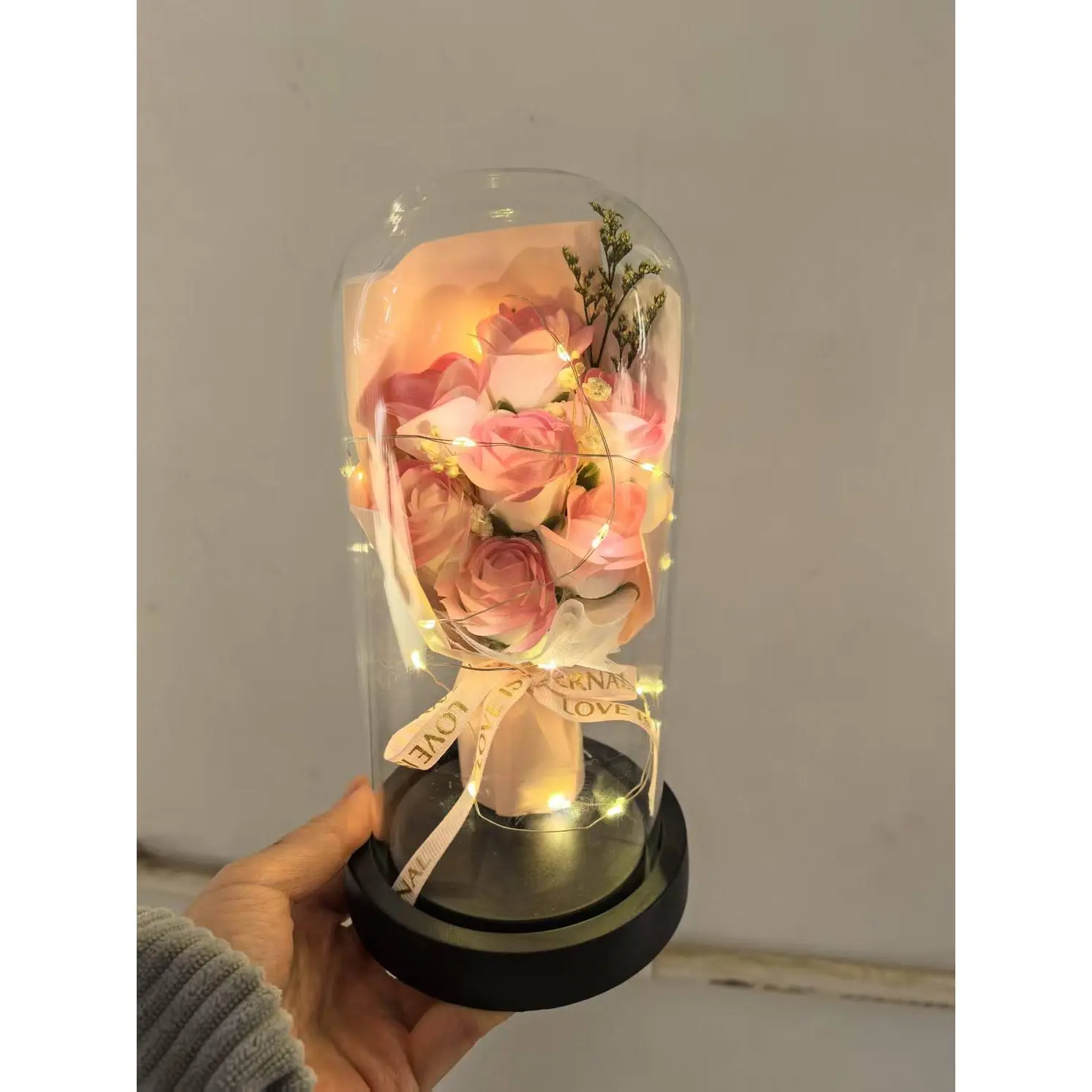 Qixi Festival Gift Rose Lamp Glass Cover Preserved Flower Dried Flower Bouquet Teacher's Day Carnation Small Ornament
